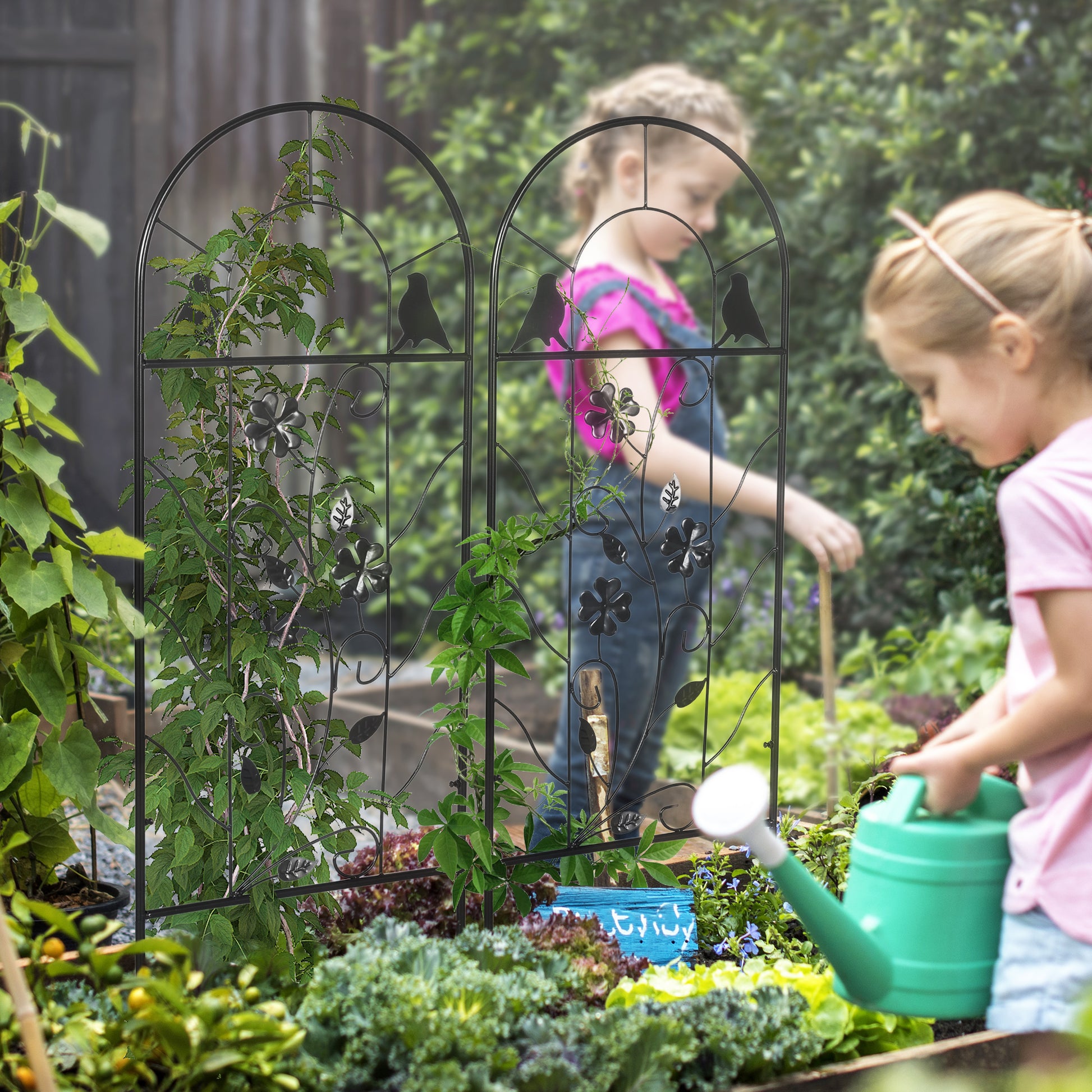 Maximize o crescimento das suas plantas e trepadeiras com este conjunto de 2 treliças decorativas em aço preto de 38x98 cm. Mantenha seu jardim organizado e protegido de animais indesejados.