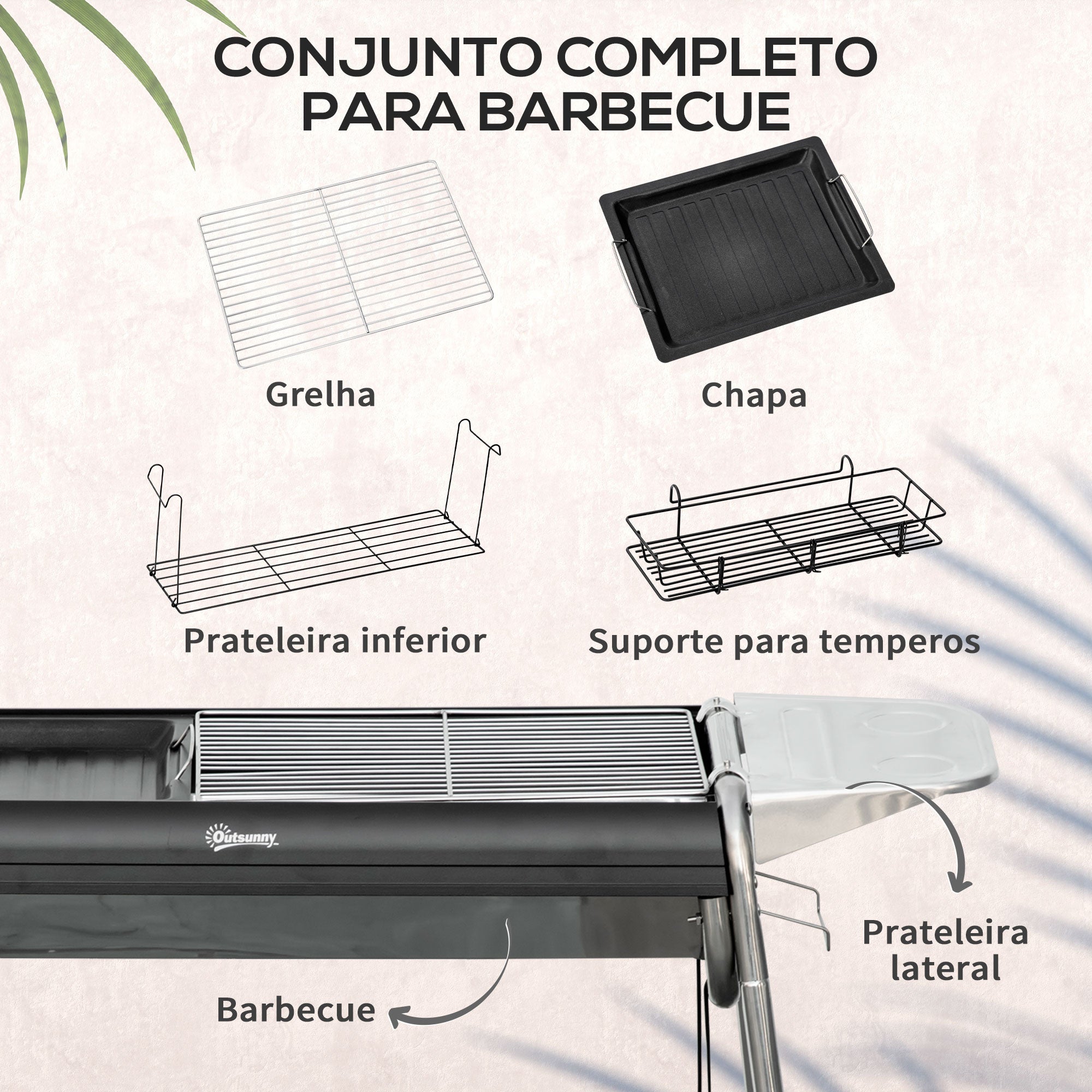 Barbecue Portátil a Carvão – 96x61x72 cm – Preto – Aço Inoxidável e Ferro Fundido