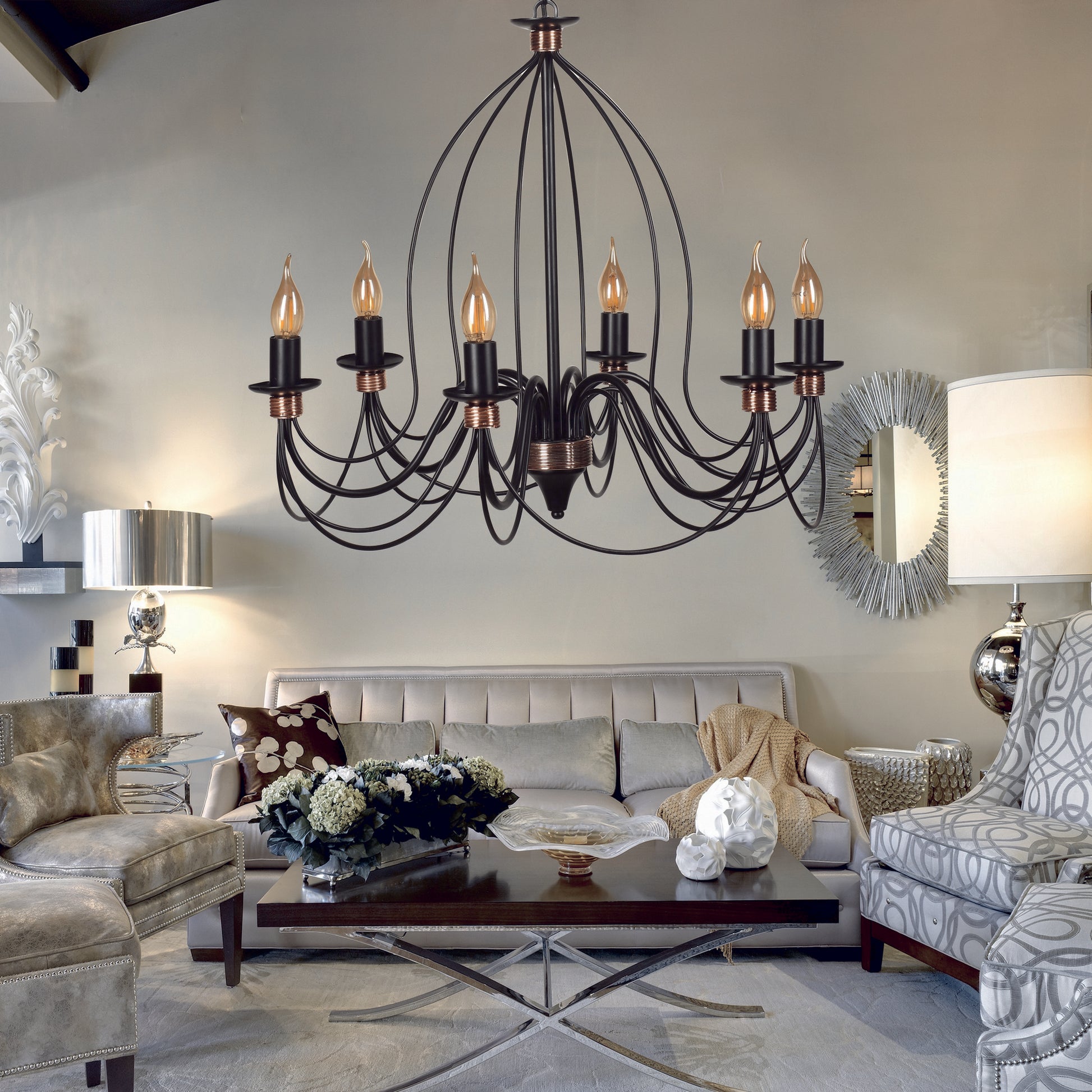 Transforme seu espaço de vida em uma cativante oásis de elegância e charme com nosso deslumbrante Lustre Tradicional Americano. Esta peça requintada apresenta um corpo de metal lindamente trabalhado com um luxuoso revestimento de cobre, adicionando um toque de sofisticação a qualquer ambiente. O acabamento de tinta seca no forno garante durabilidade e beleza duradoura, tornando-se uma adição atemporal à sua decoração.