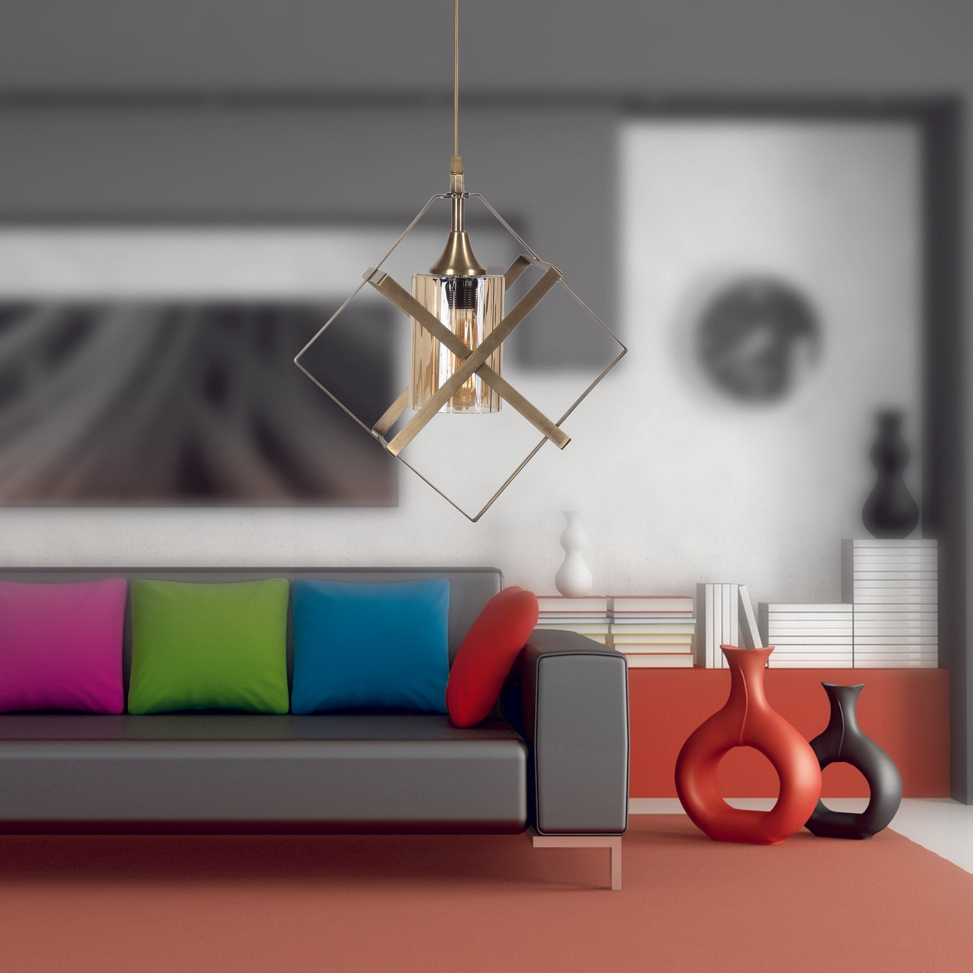 Candeeiro de Teto – 70 cm altura – Multicolorido – Metal e vidro