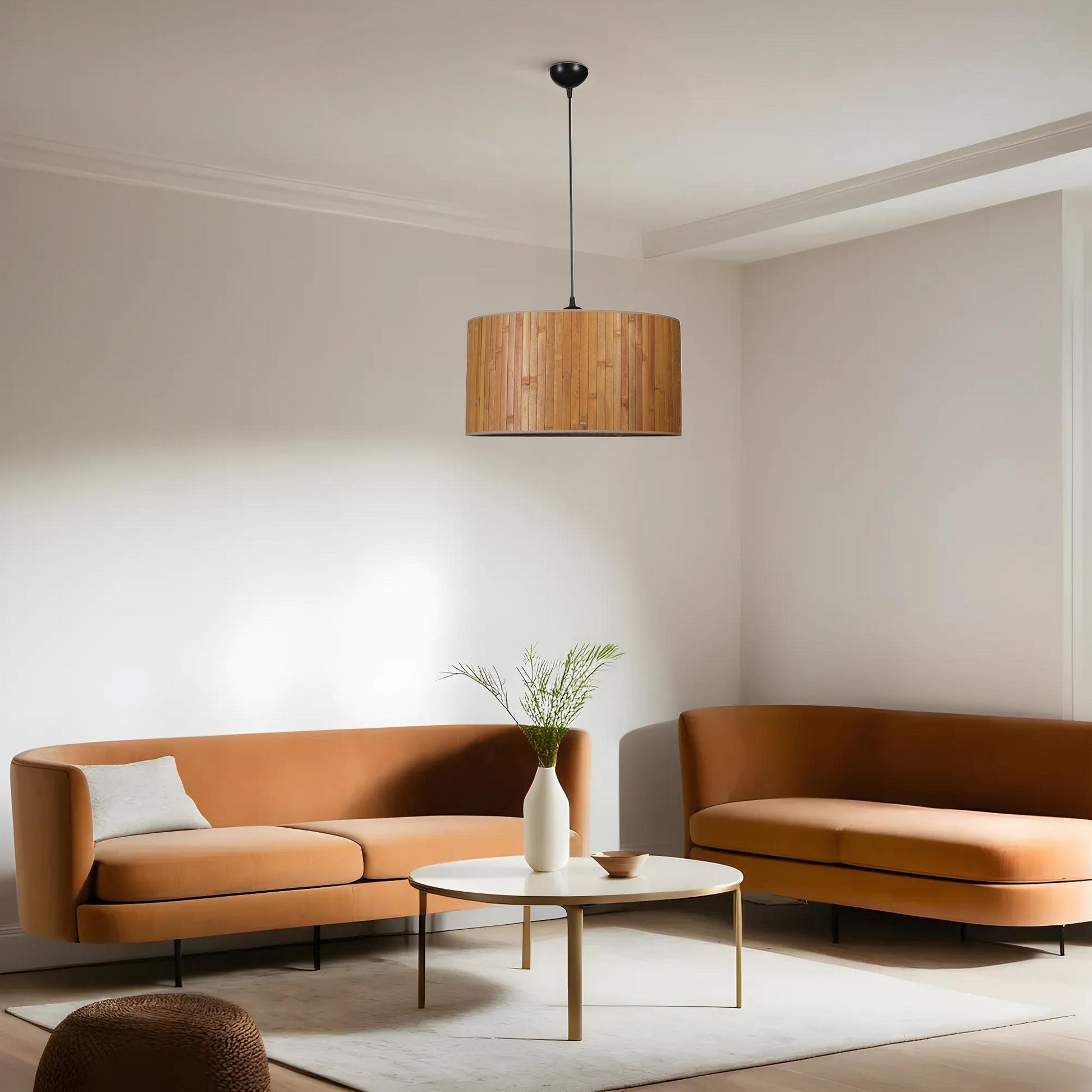 Candeeiro de Teto – 45 cm diâmetro – Nogueira e Preto – Bambu e Metal