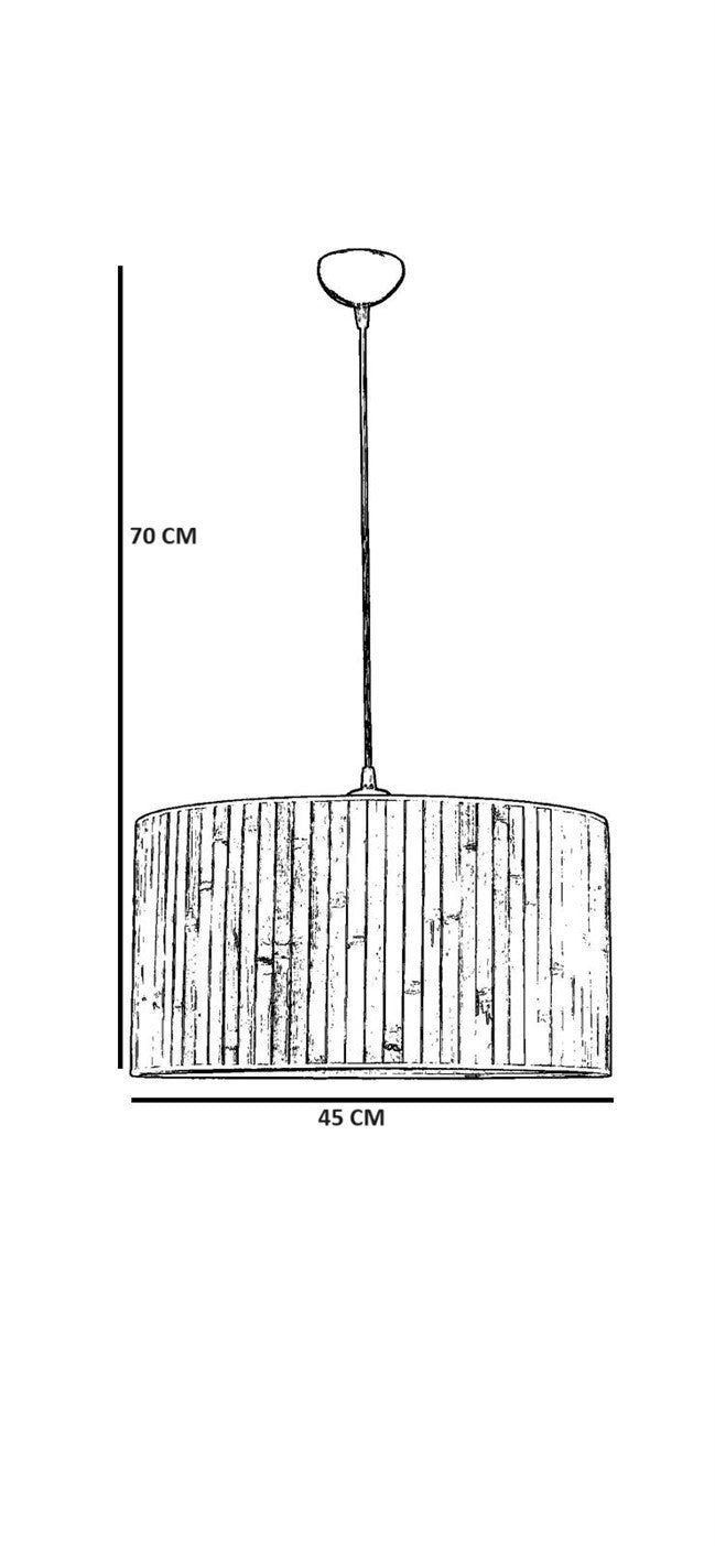 Ilumine sua casa com a deslumbrante beleza do nosso Lustre de Corpo Metálico. Esta peça requintada apresenta um design único com uma Tampa de Bambu que adiciona um toque de elegância a qualquer ambiente. O lustre tem um diâmetro de 45 cm e uma altura total de 70 cm, tornando-se a peça de destaque perfeita para o seu espaço de convivência.