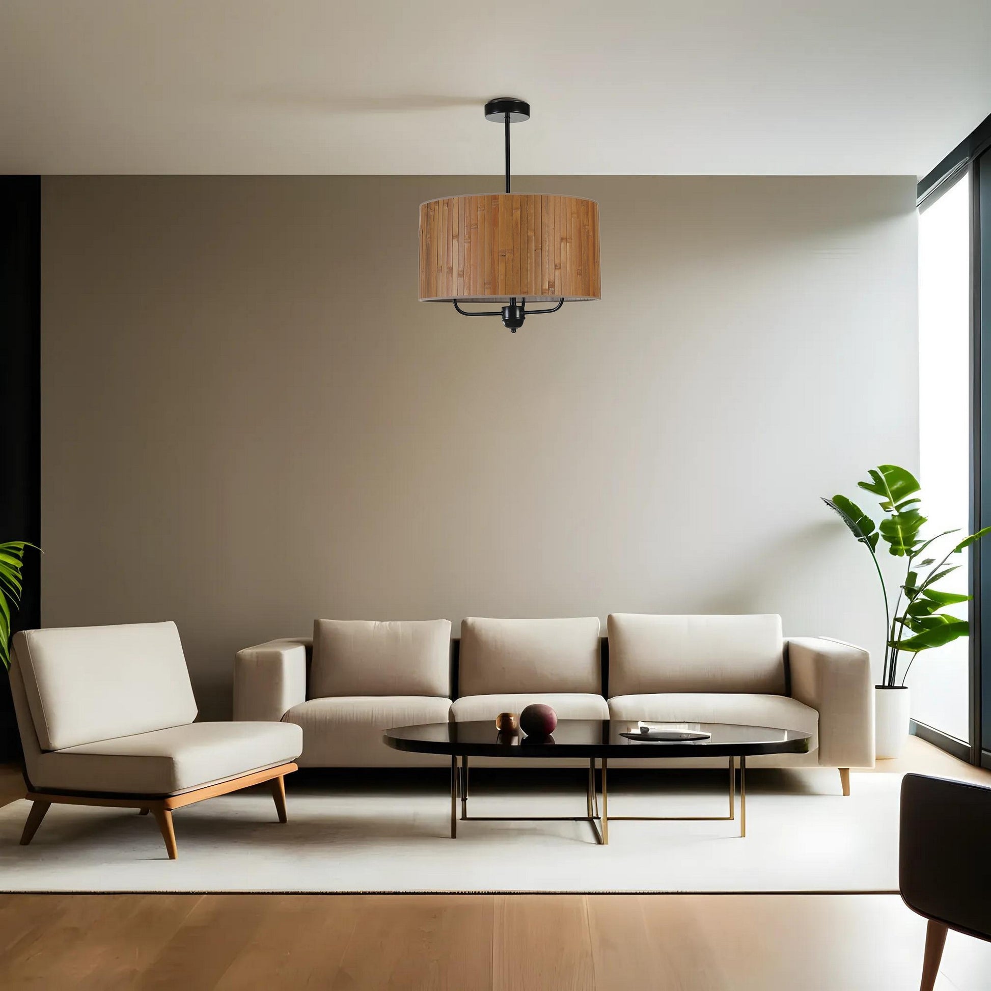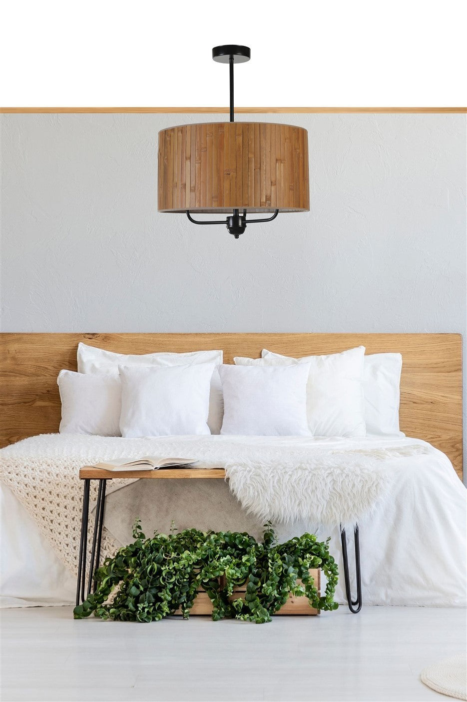 Candeeiro de Teto – 45 cm – Nogueira e Preto – Metálico e Bambu