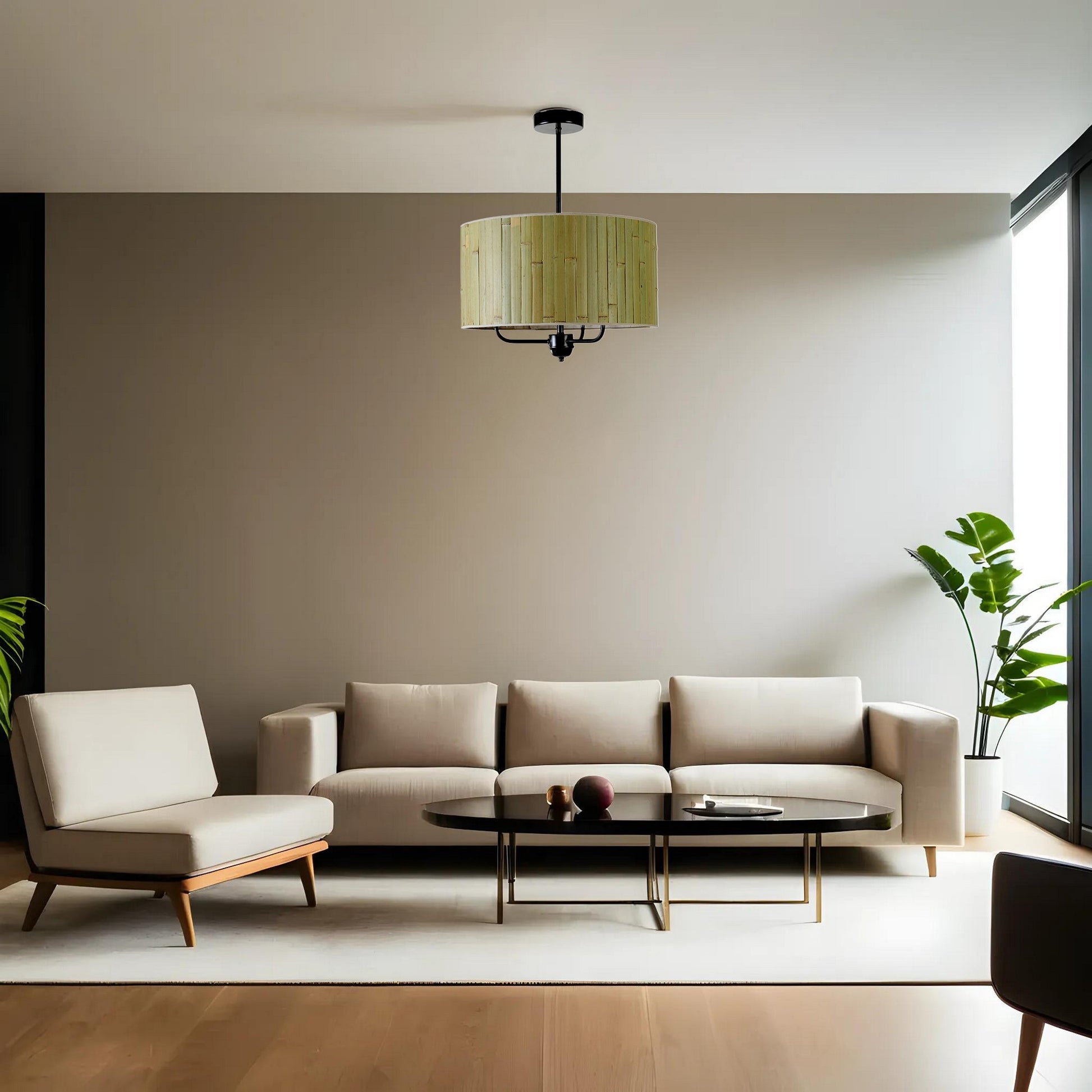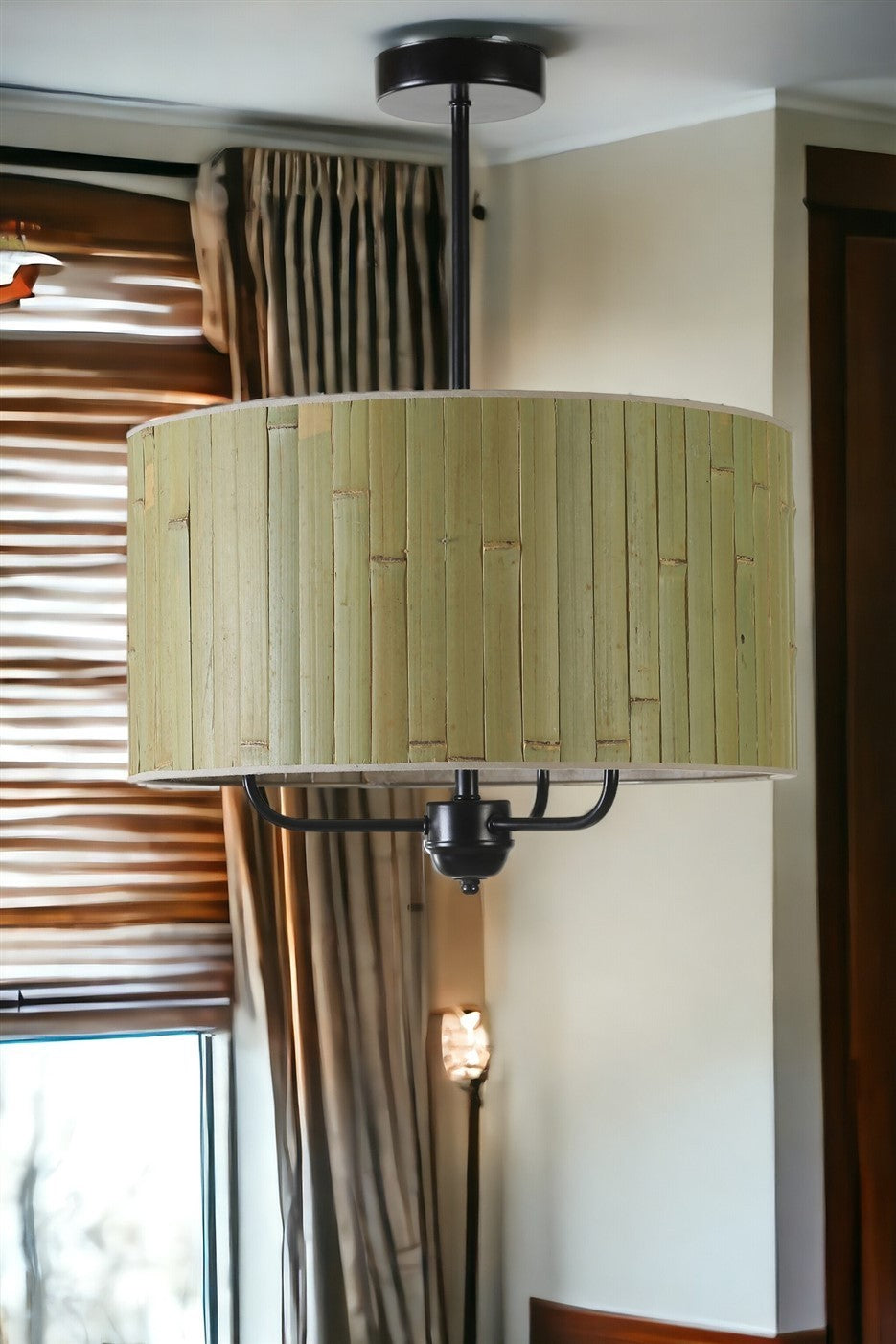 Candeeiro de Teto – 45 cm – Verde e Preto – Bambu e Metal