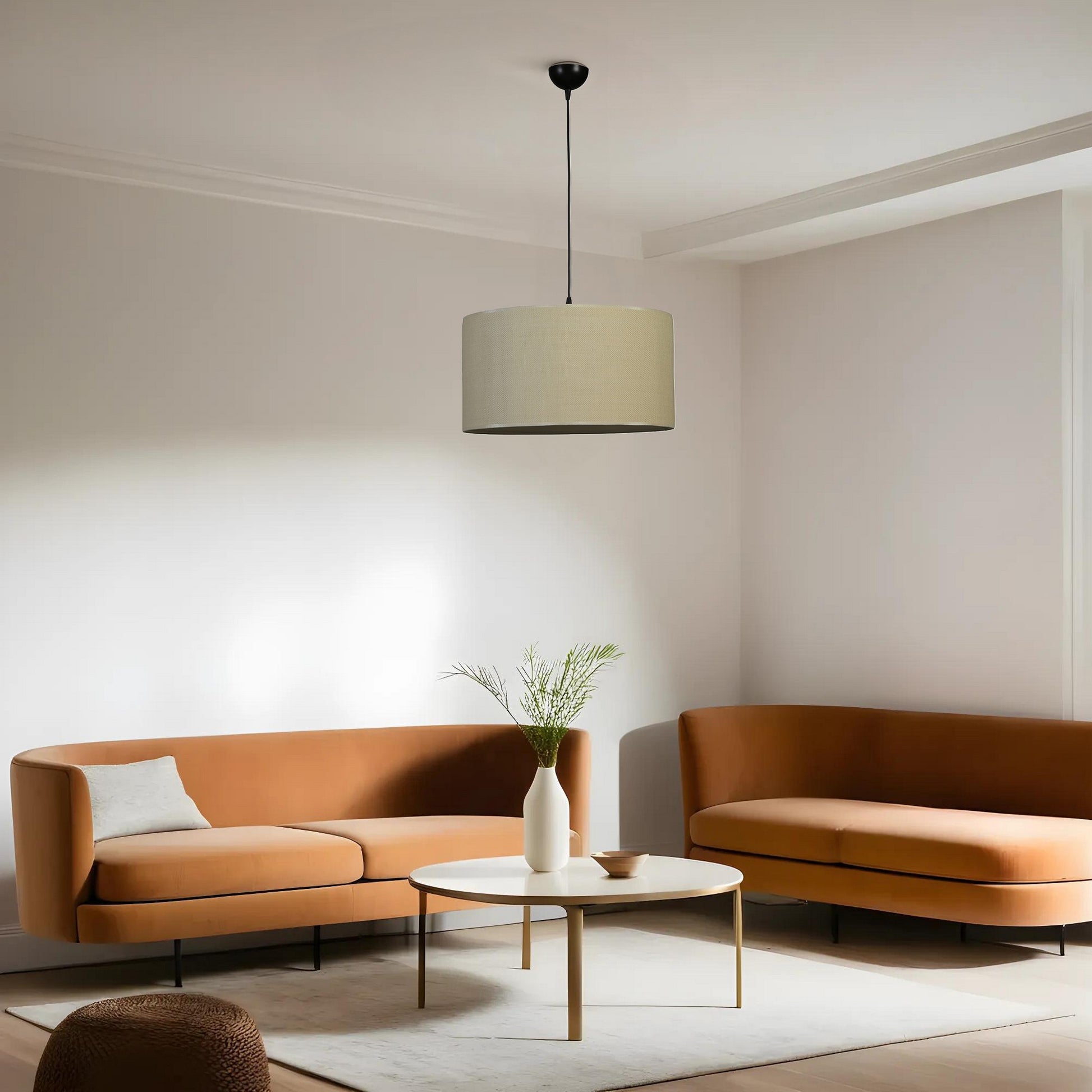 Candeeiro de Teto – 45 cm – Bege e Preto – Metal e Bambu