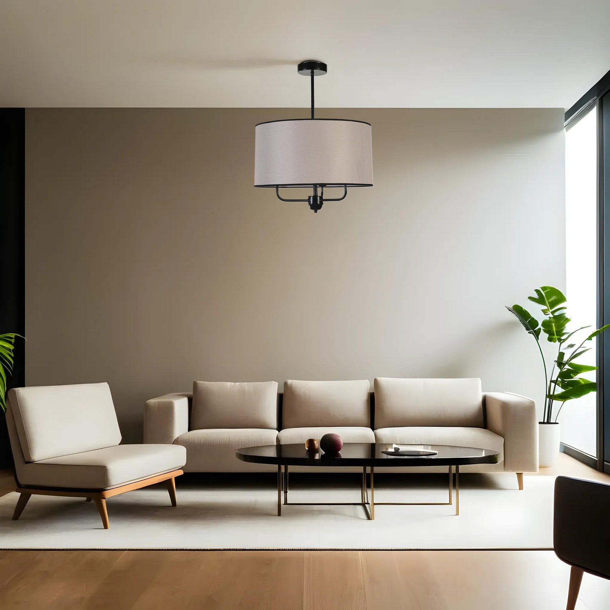 Candeeiro de Teto – 45 cm – Bege e Preto – Metal e Bambu