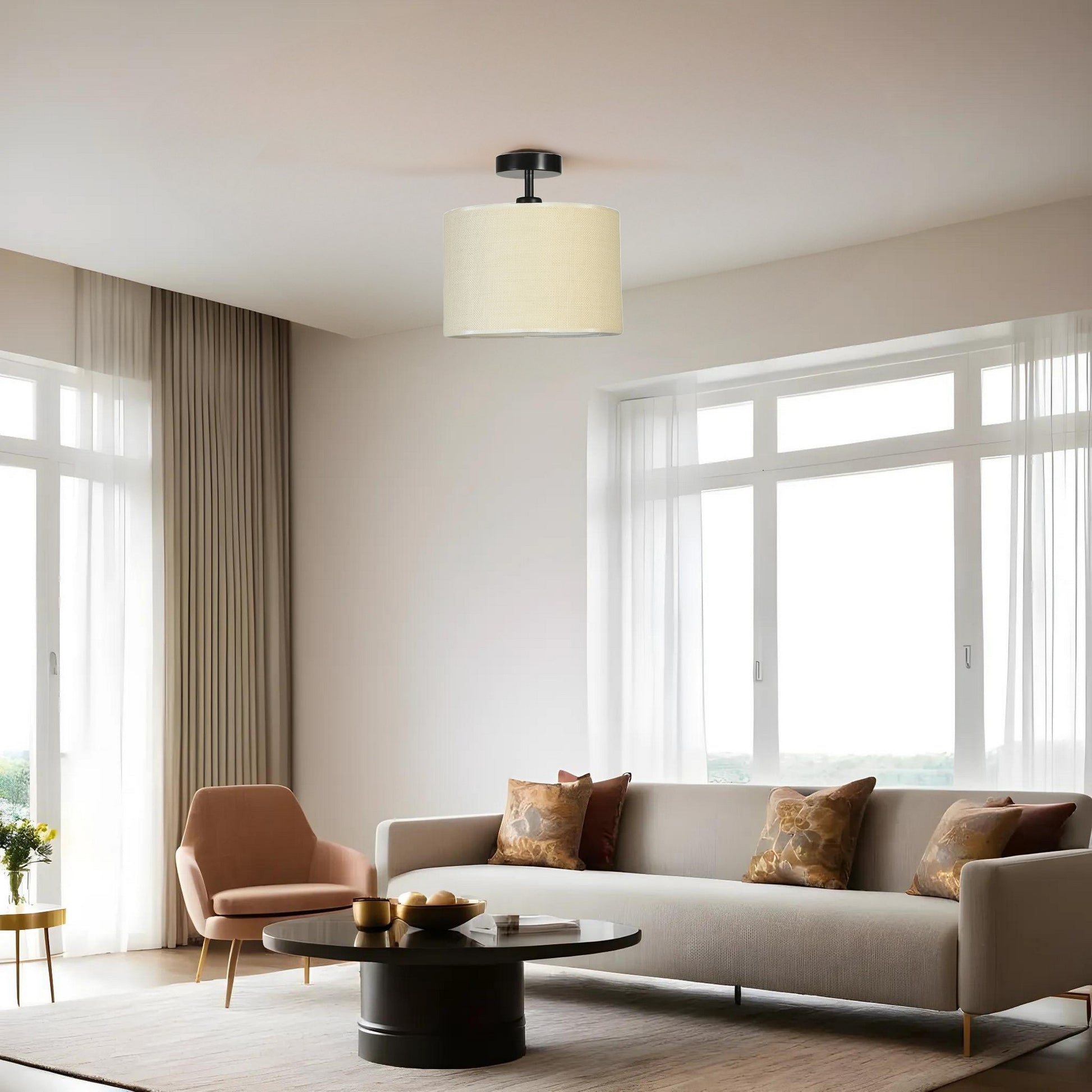 Candeeiro de Teto – 30 cm – Bege e Preto – Metal e Bambu