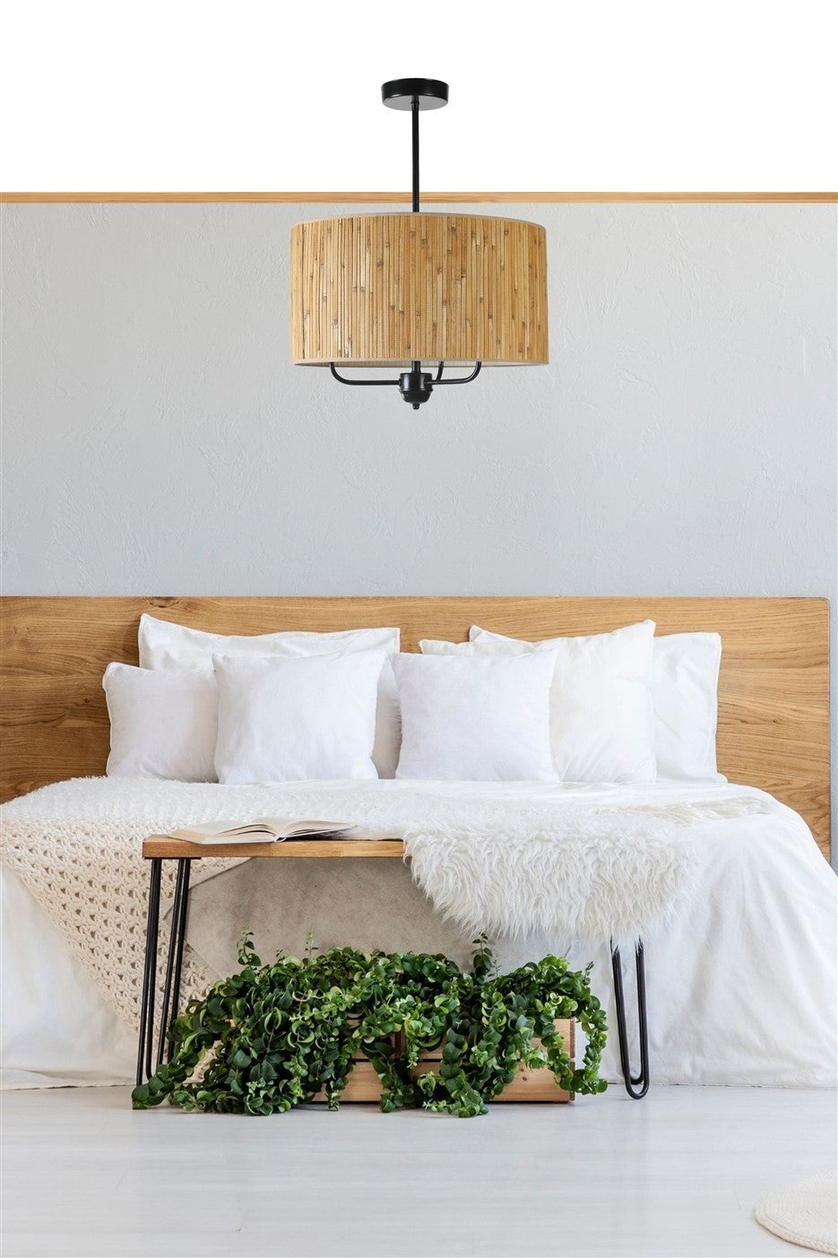 Candeeiro de Teto – 45 cm – Preto – Bambu e metal