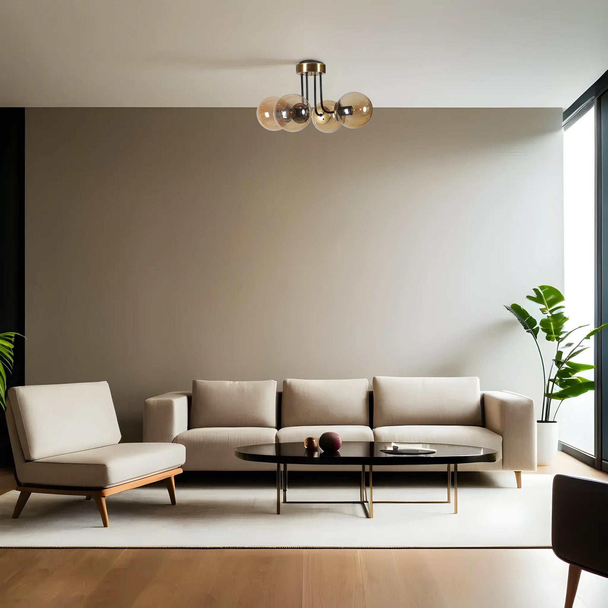 Candeeiro de Teto – 40 cm – Âmbar, Dourado, Preto – Metal e Vidro