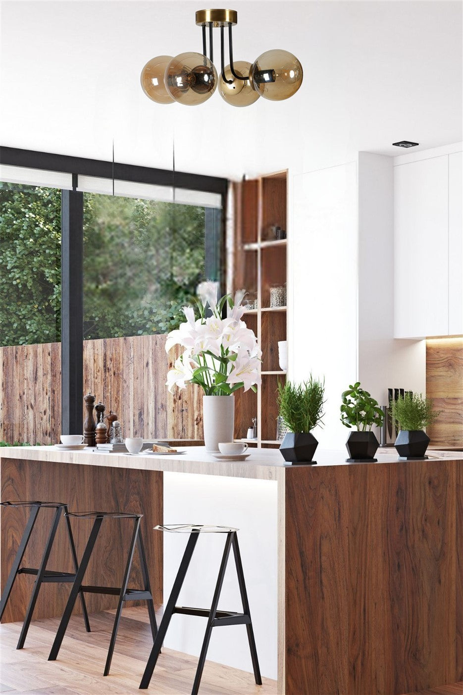 O corpo metálico intricado do lustre é lindamente complementado pela cúpula de vidro, criando uma exibição visual hipnotizante que instantaneamente elevará a decoração da sua casa. A combinação das cores âmbar, ouro e preto adiciona um toque de opulência e glamour a qualquer espaço, tornando-o a peça de destaque perfeita para sua sala de estar, sala de jantar ou quarto.