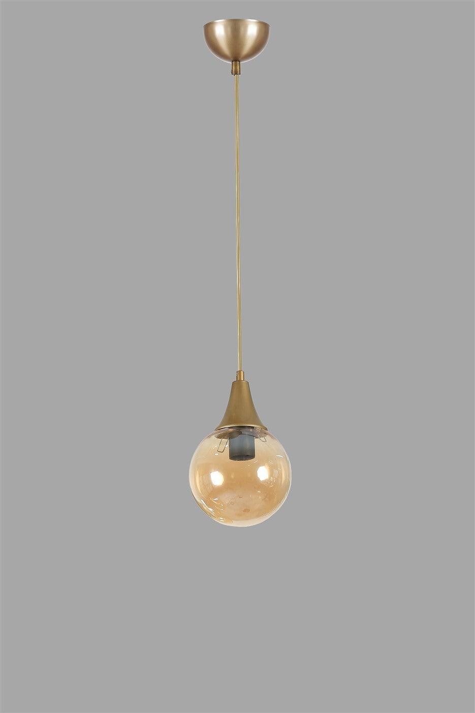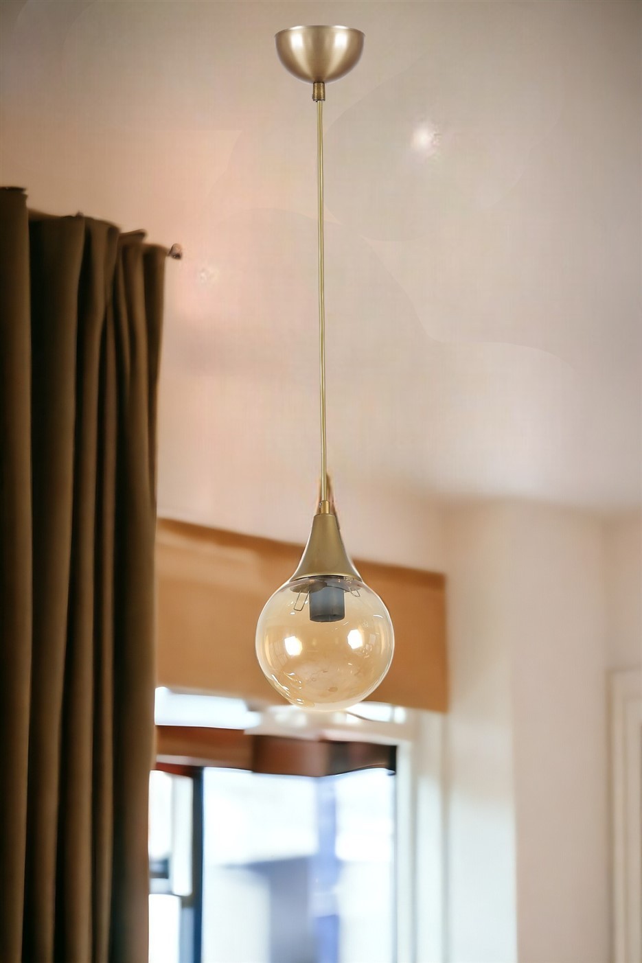 Candeeiro de Teto – 70 cm – Âmbar e Ouro – Metal e Vidro