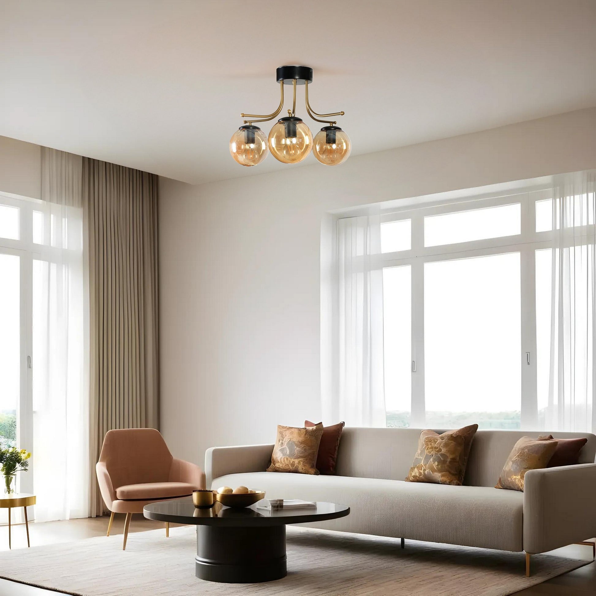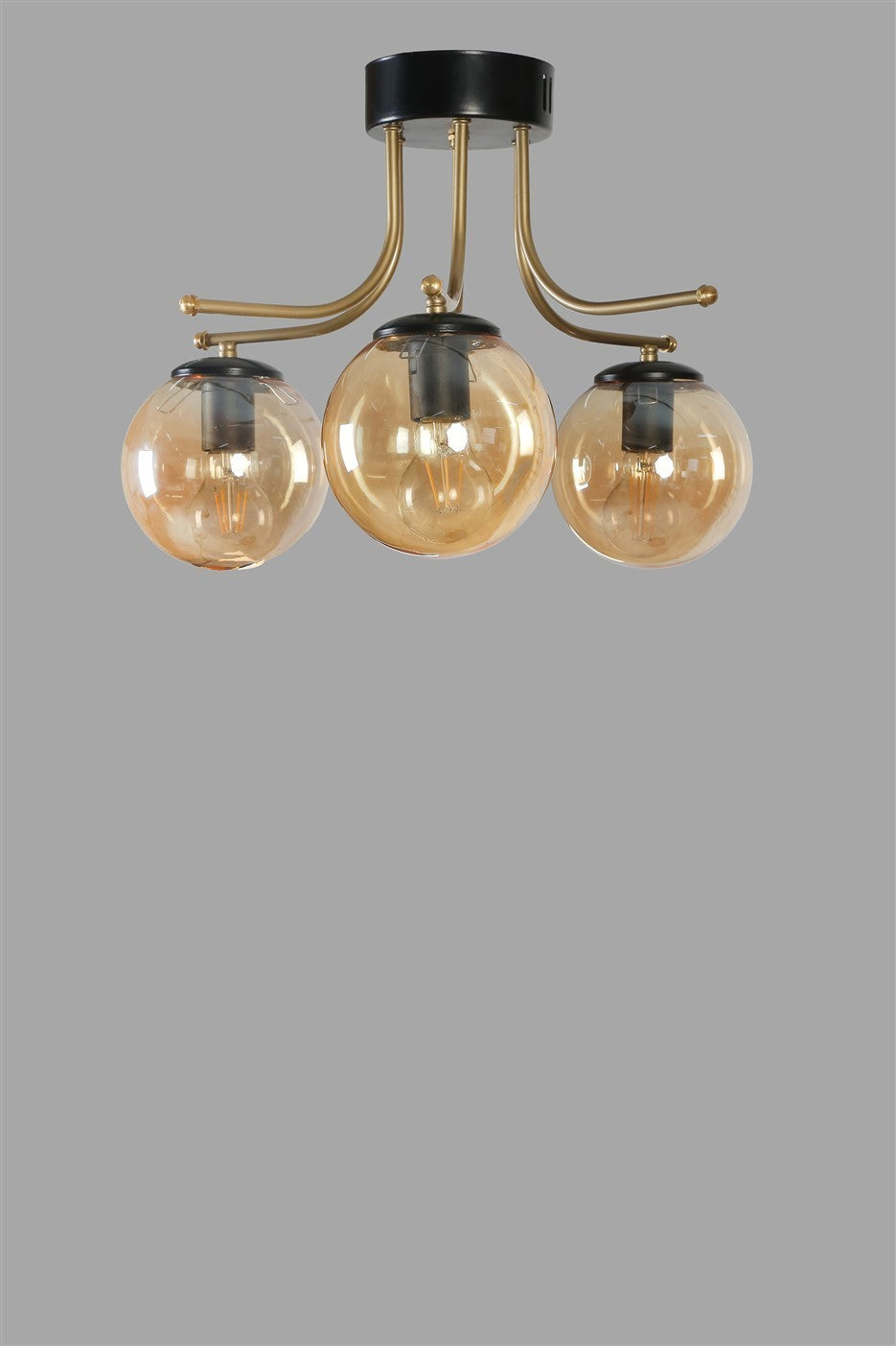 Candeeiro de Teto – 50 cm – Âmbar e Preto – Metal e Vidro