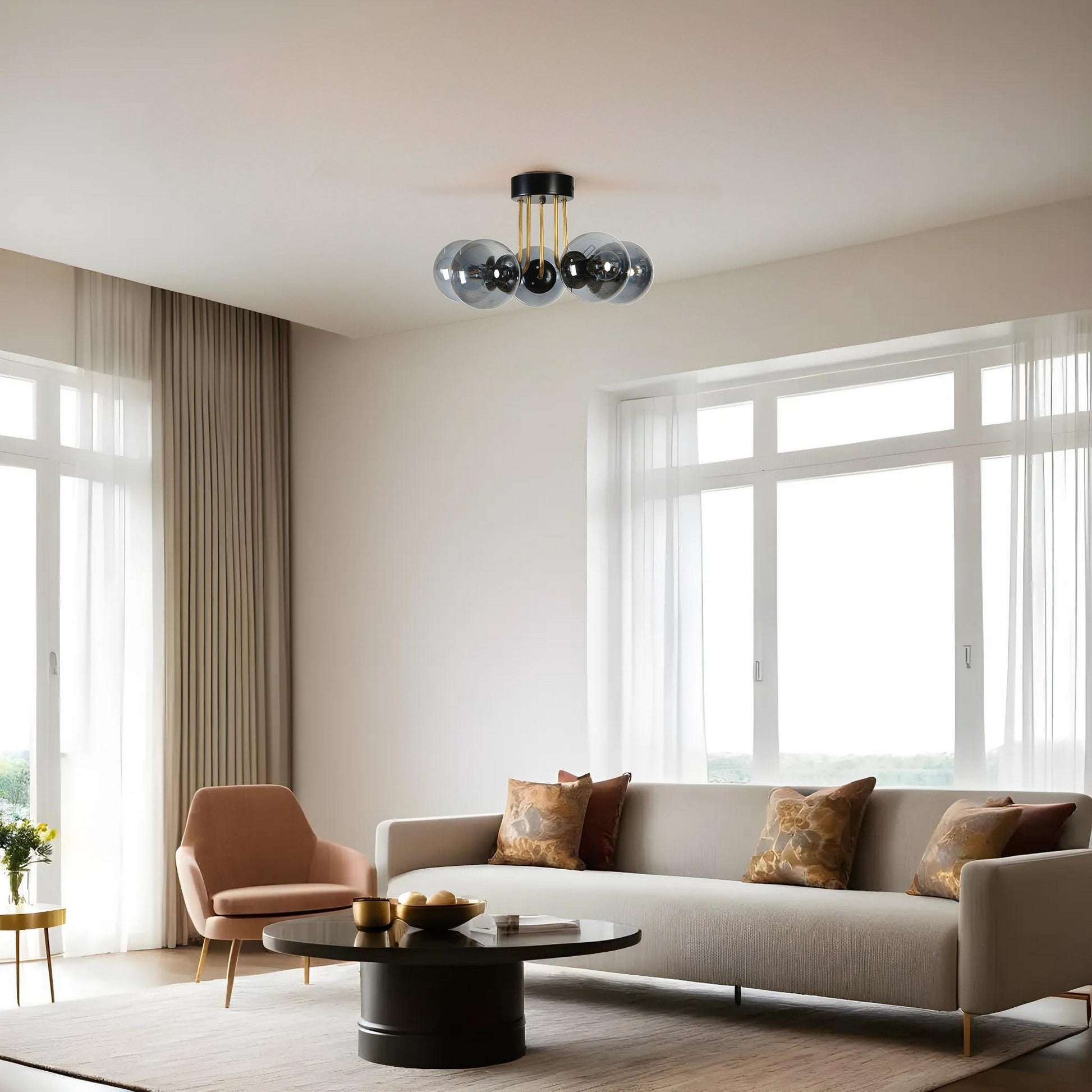 Candeeiro de Teto – 45 cm – Preto e Fumaça – Metal e Vidro