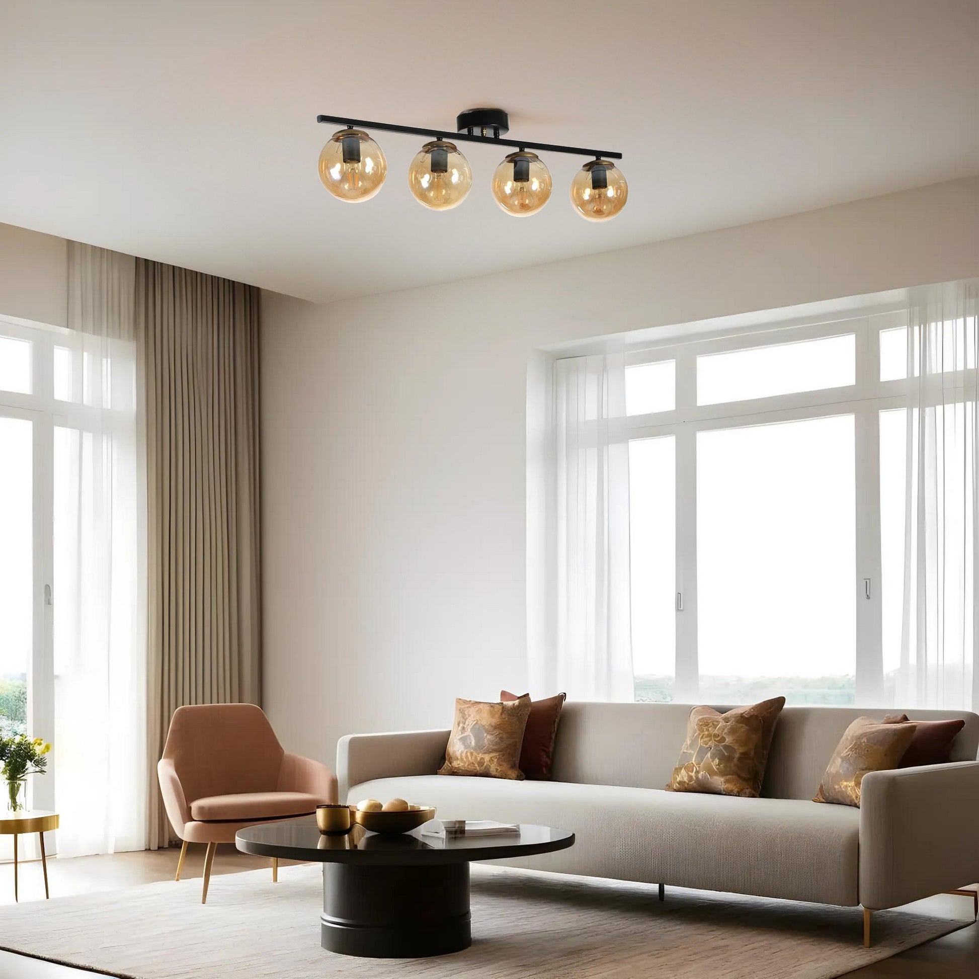 Candeeiro de Teto – 15 cm de diâmetro – Preto e Âmbar – Metálico e vidro