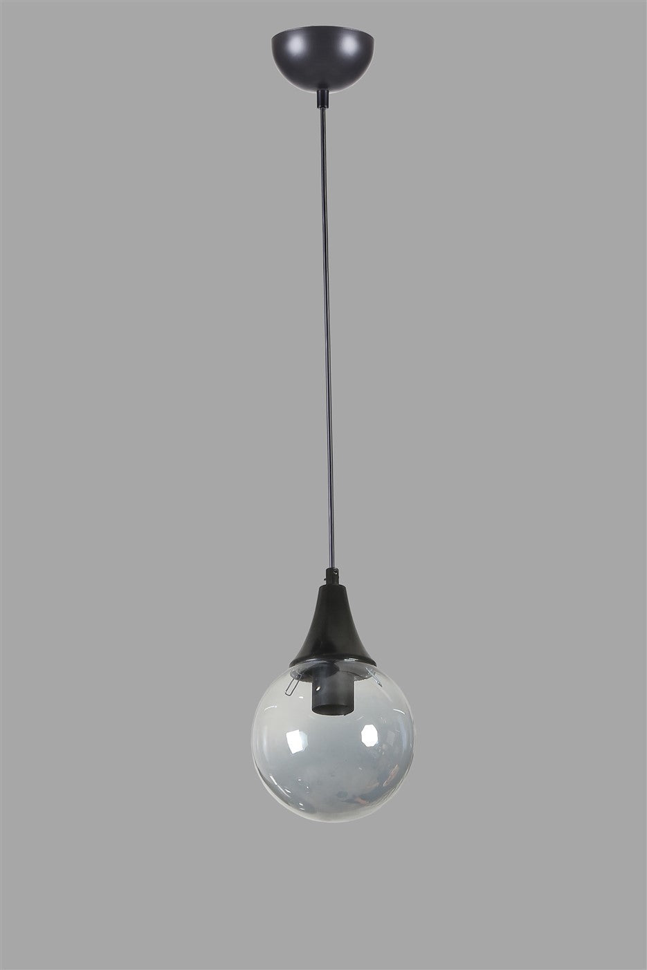 Candeeiro de Teto – 70 cm – Preto e Fumê – Metal e Vidro