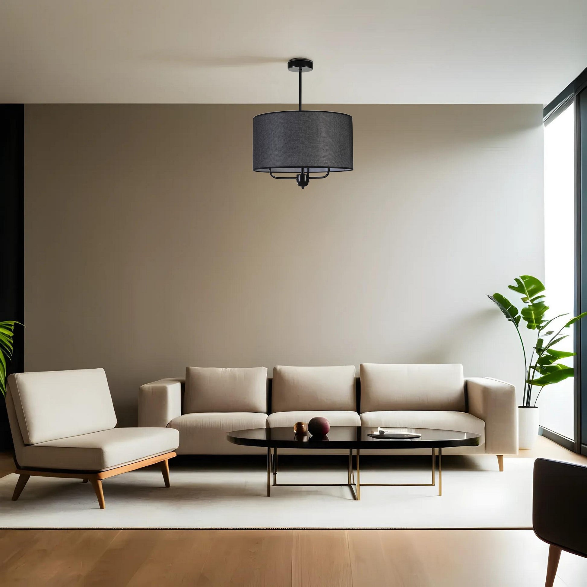 Candeeiro de Teto – 45 cm – Preto – Metal e Tecido