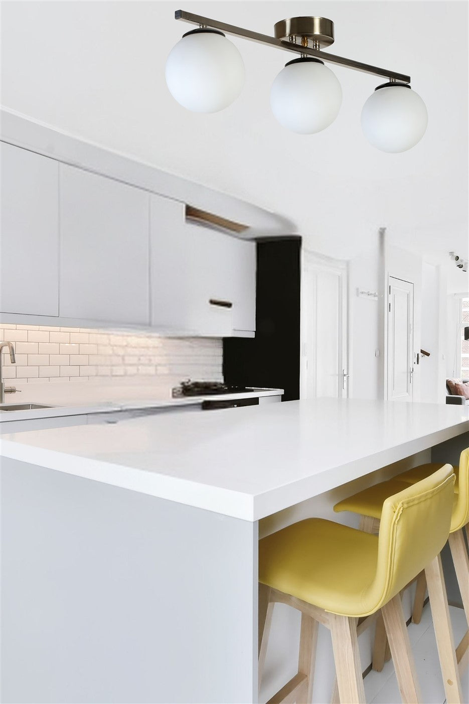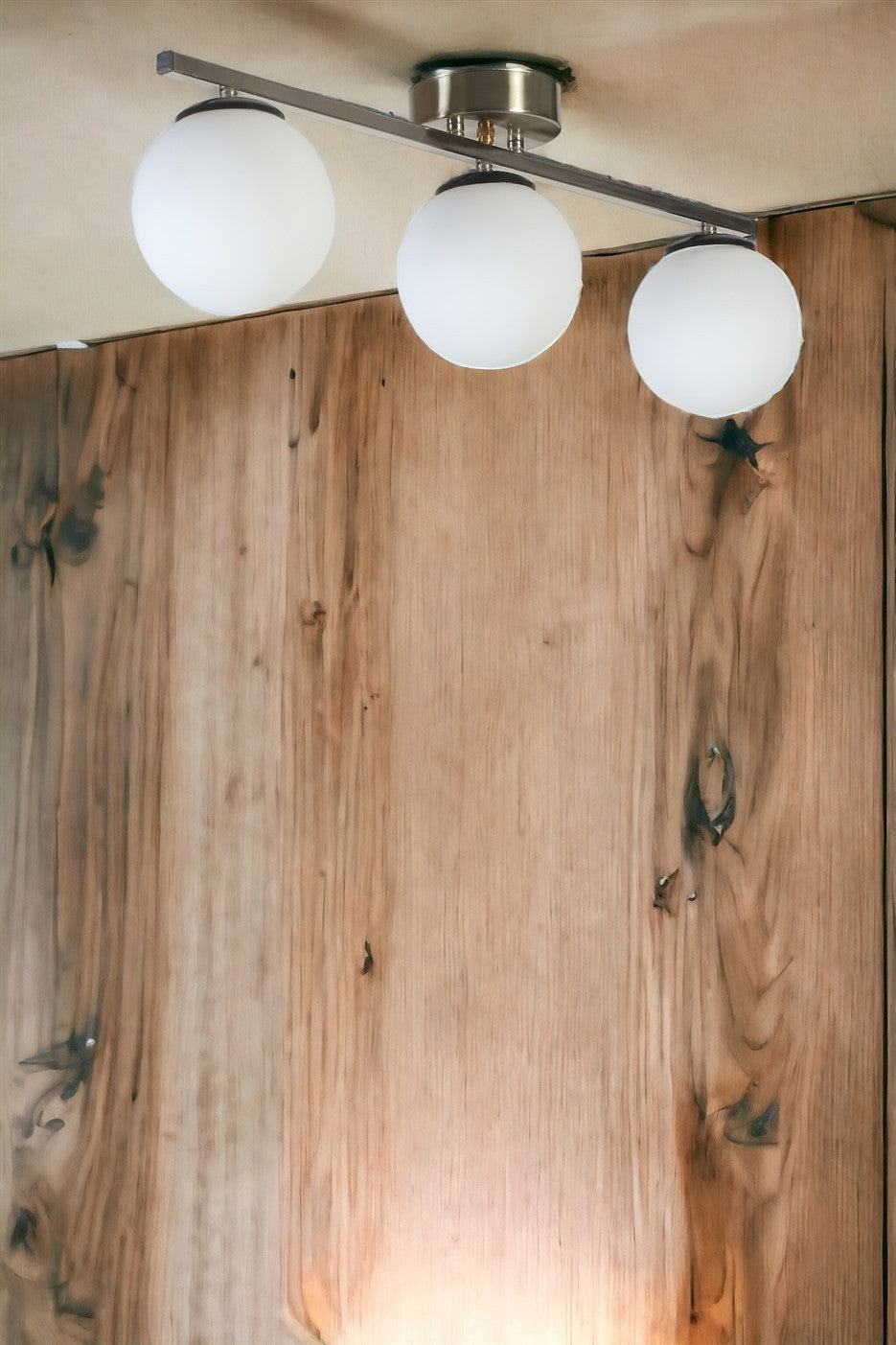 Candeeiro de Teto – 56 cm – Branco e Cromado Fosco – Metal e Vidro