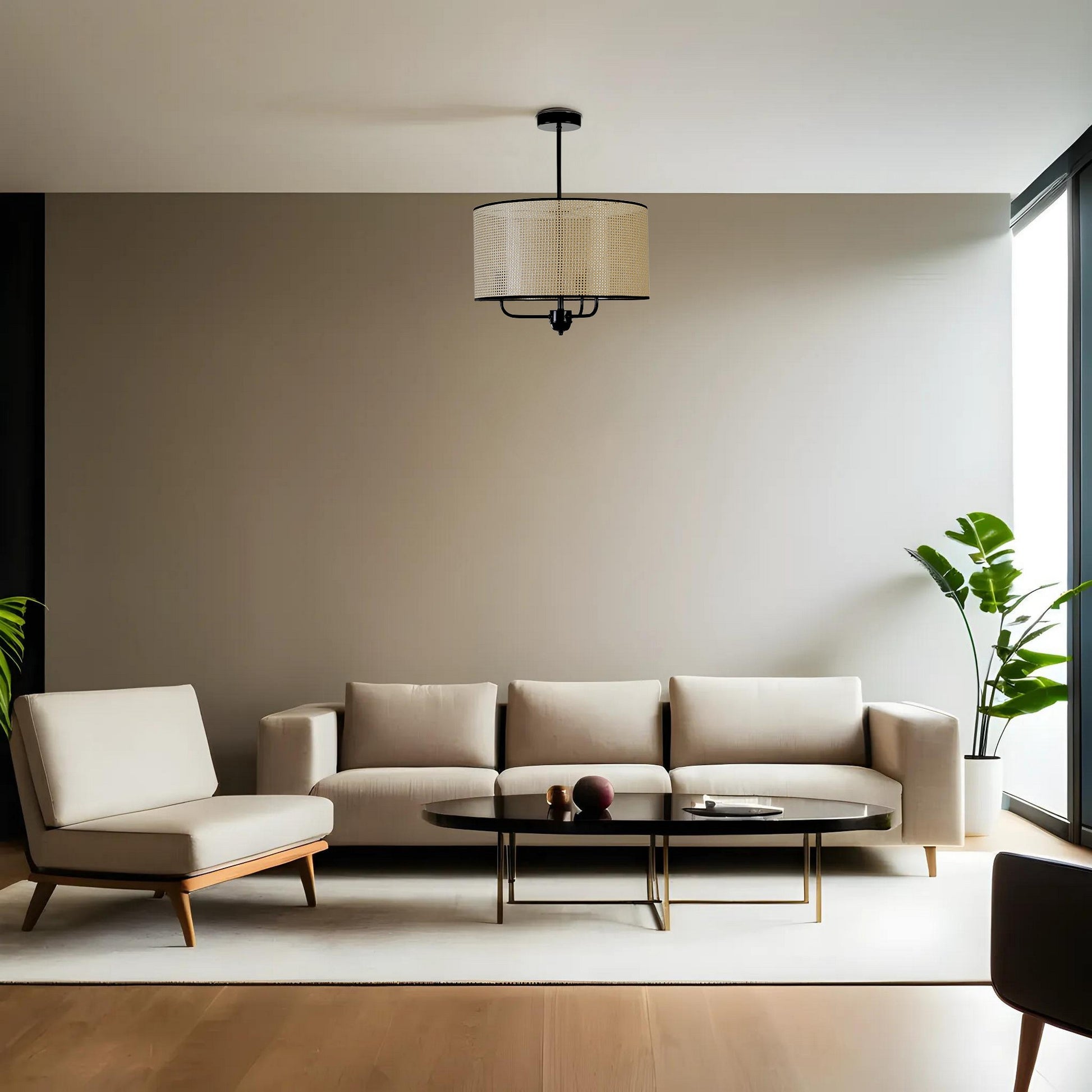 Candeeiro de Teto – 45 cm – Dourado e Preto – Metal e Bambu