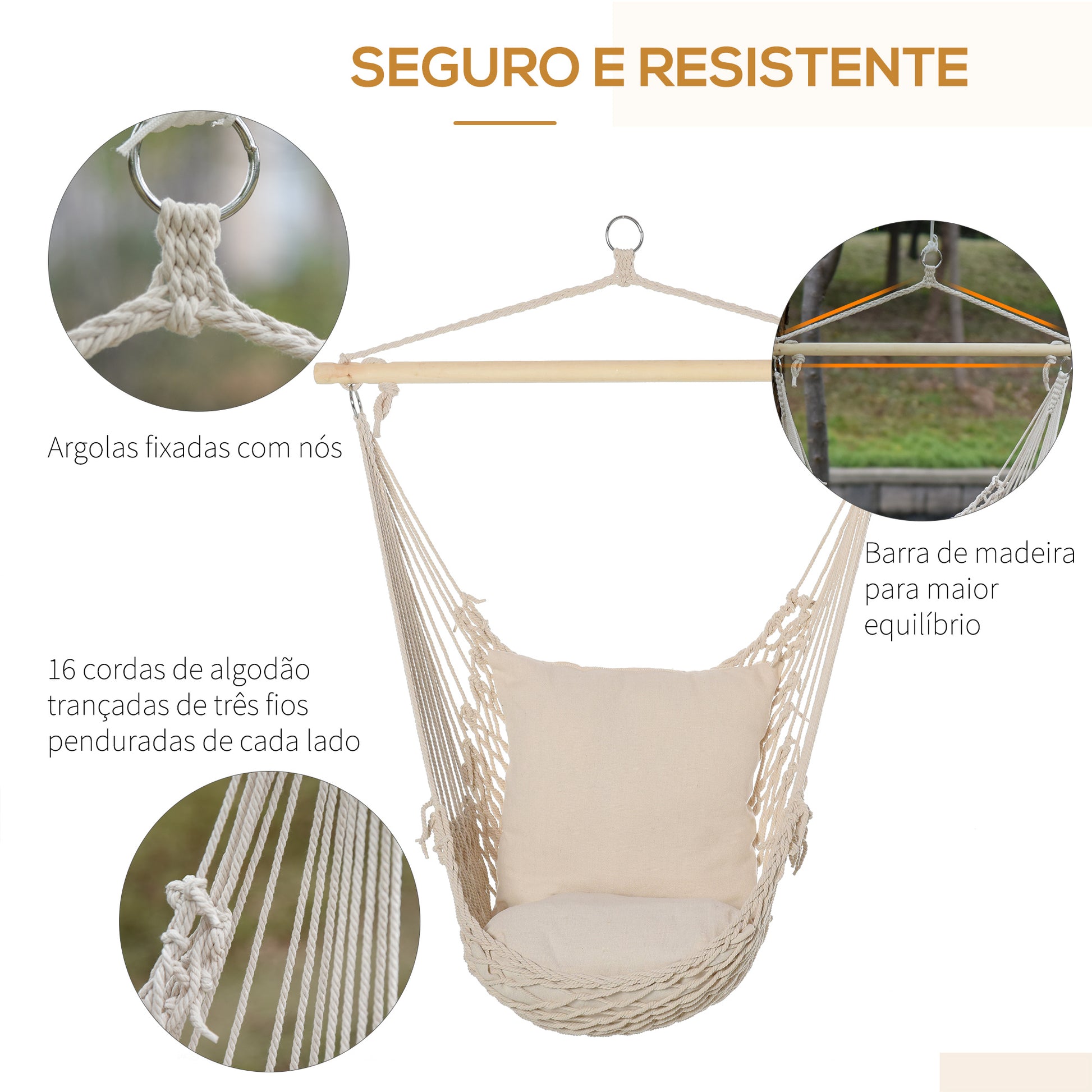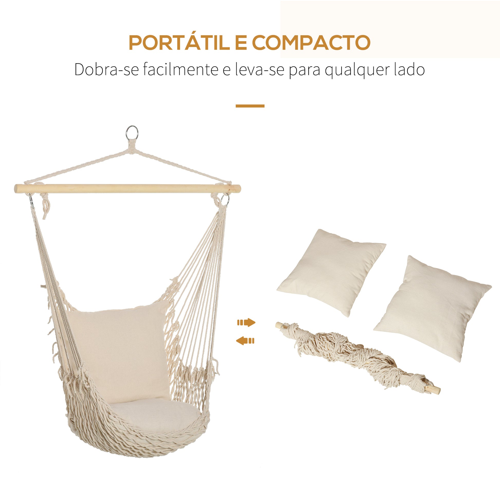 Cadeira Rede Suspensa com 2 Almofadas de Algodão - 120x90 cm - Cor Creme