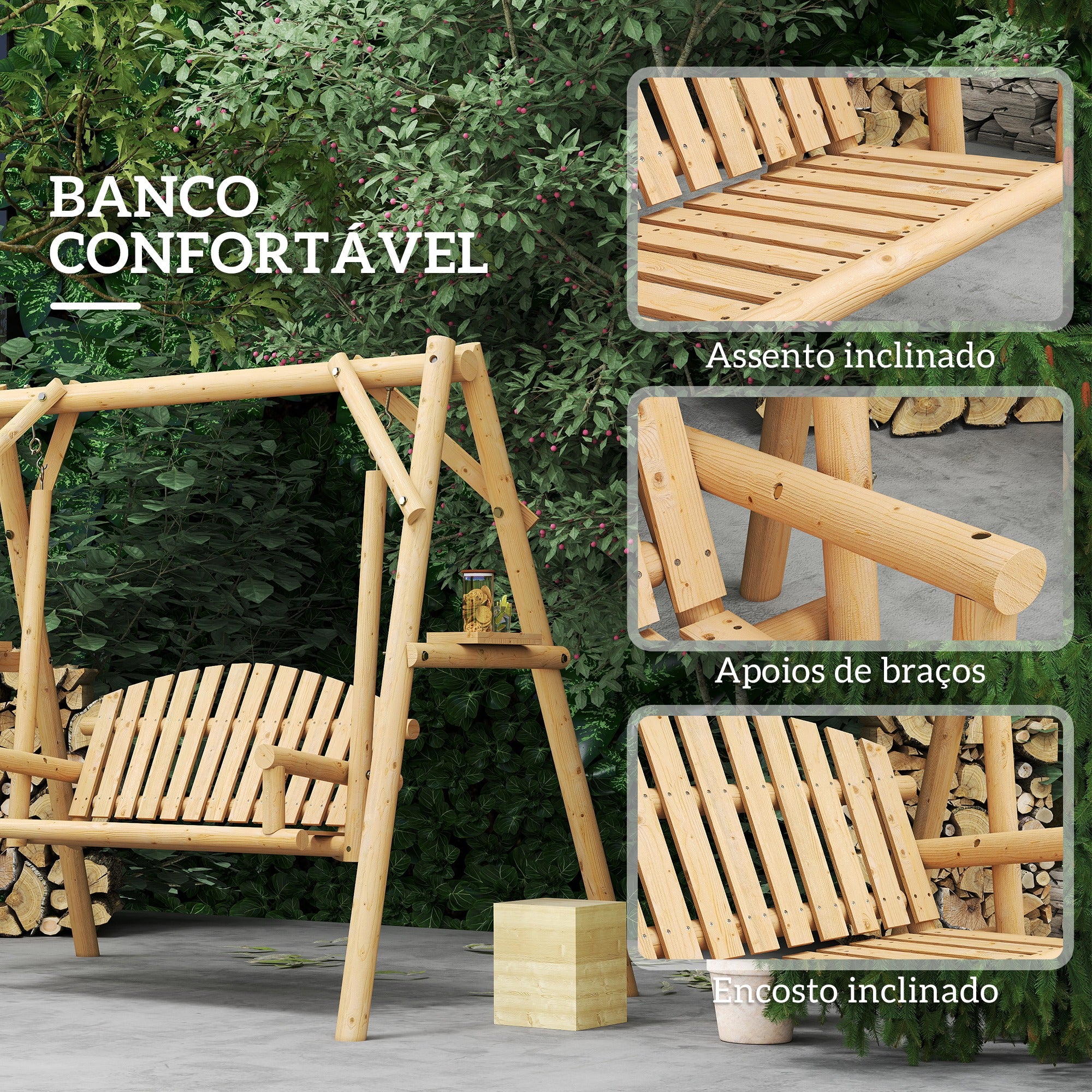 Banco Baloiço de Jardim de Madeira 200x135x175 cm - Cor de Madeira Natural