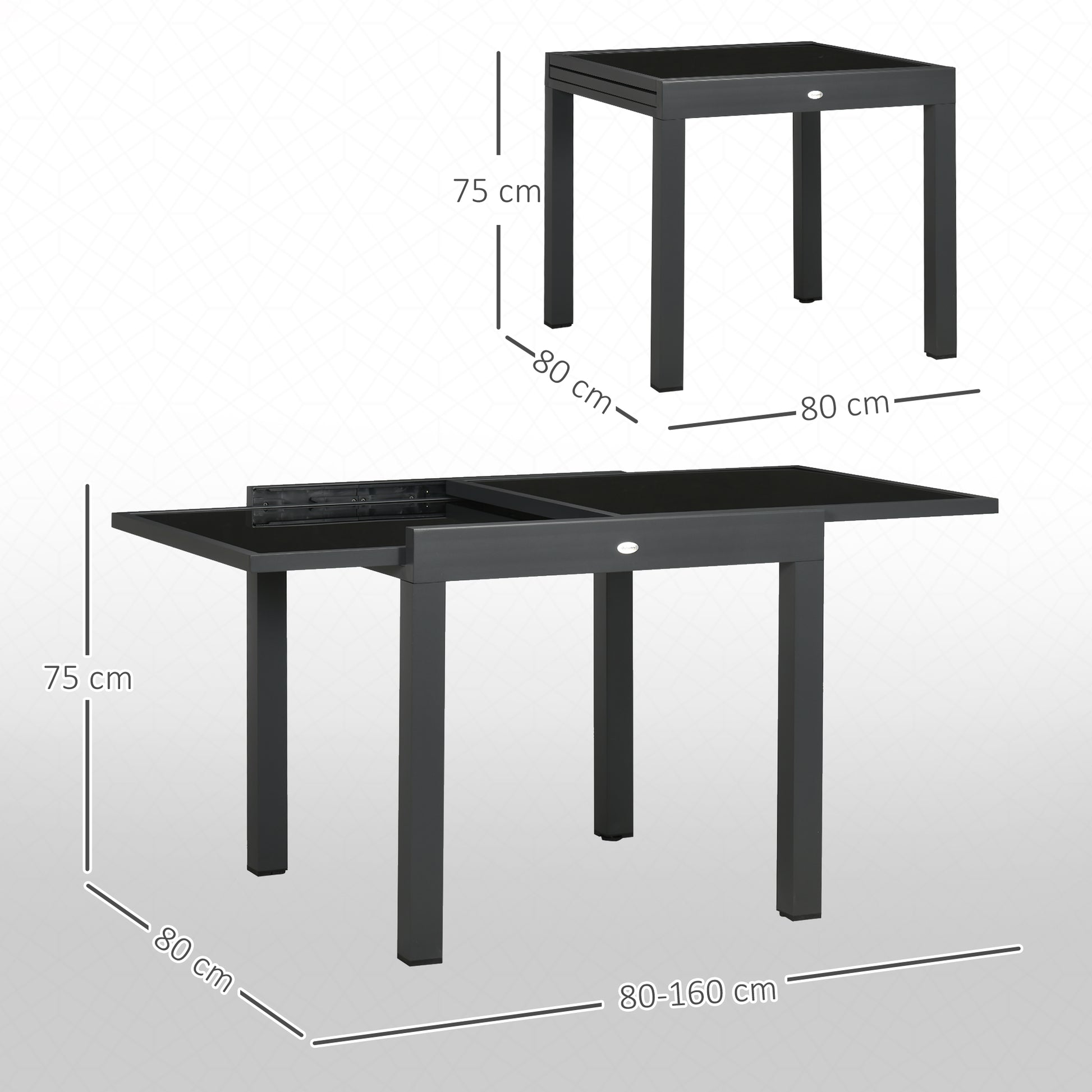 Mesa de Jardim Extensível – 160x80x75 cm – Preta – Alumínio