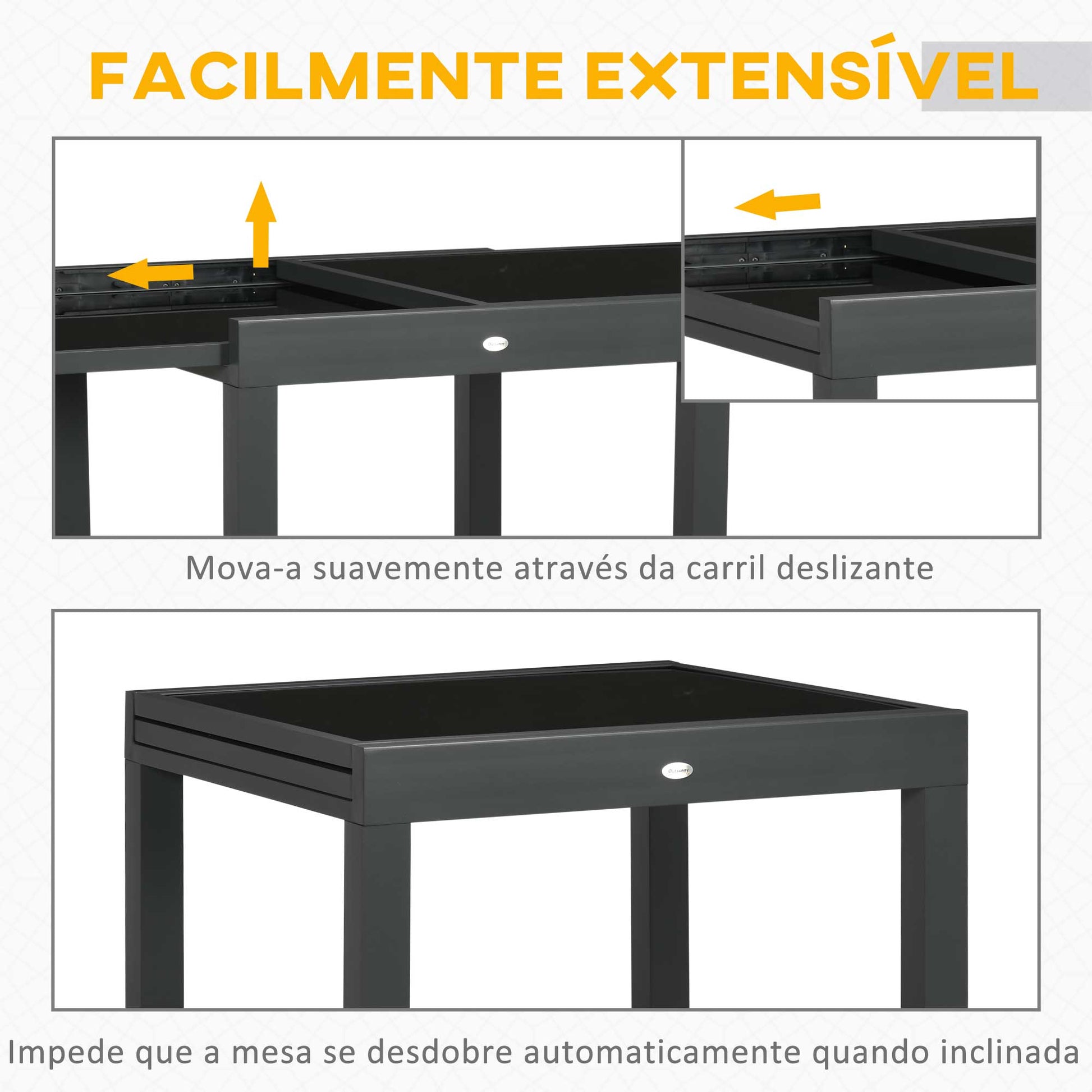 Esta mesa de jardim extensível em alumínio na cor preta é perfeita para otimizar o espaço e criar um ambiente elegante e funcional.