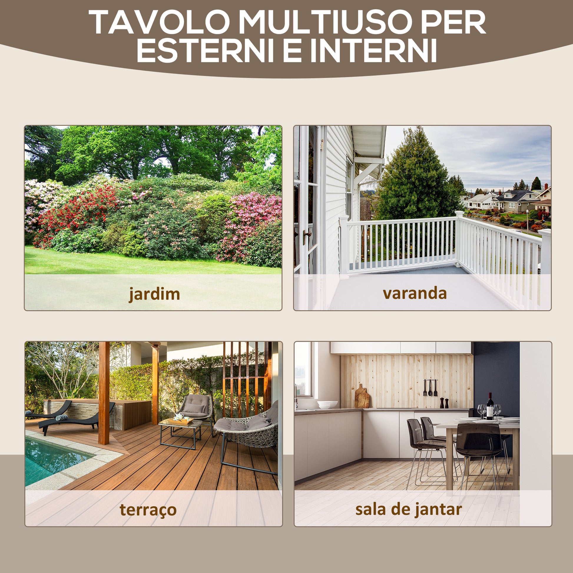 - Usos recomendados: Ideal para terraços, varandas, pátios e jardins.