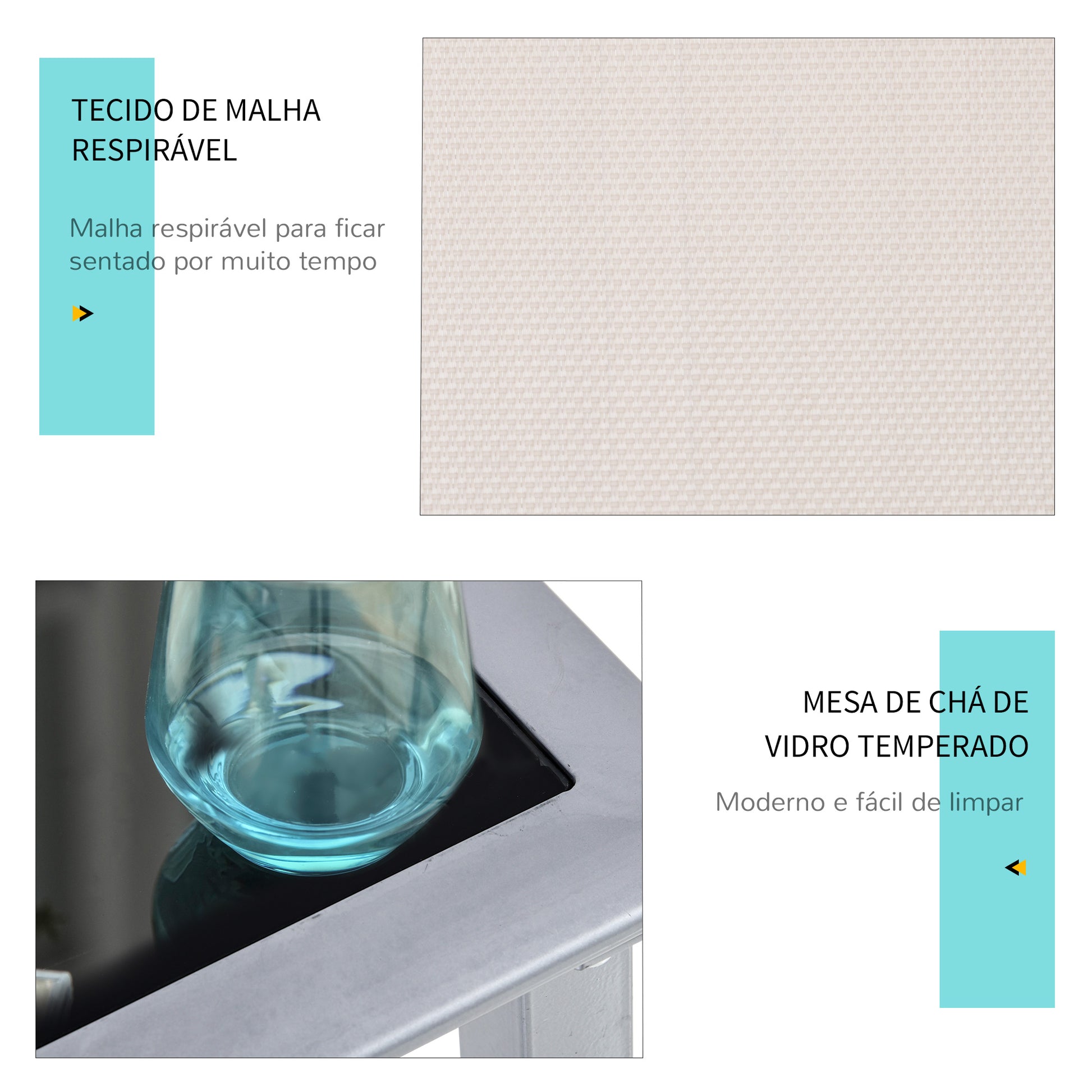 - Materiais: Metal, textilene e vidro