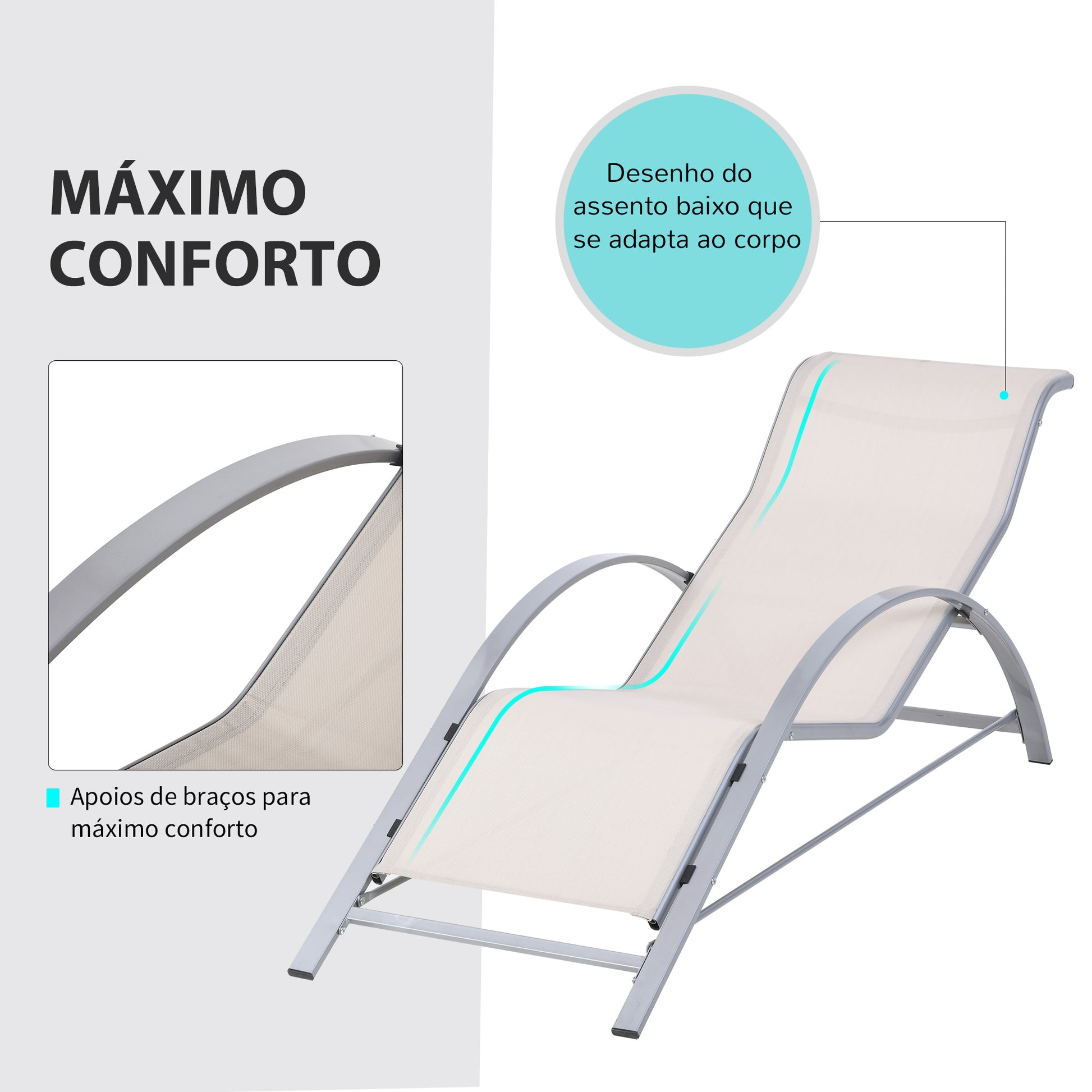 Desfrute do conforto e funcionalidade destas espreguiçadeiras resistentes e respiráveis, com estrutura metálica robusta e tecido textilene respirável. A mesa de centro proporciona o espaço ideal para ter tudo à mão enquanto relaxa ao ar livre.