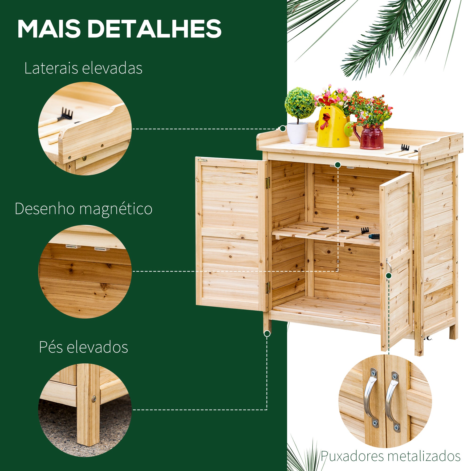 Este armário de jardim de madeira compacto oferece um amplo espaço de armazenamento para manter organizadas as suas ferramentas de jardinagem, adubos para terra e outros itens que deseja guardar.