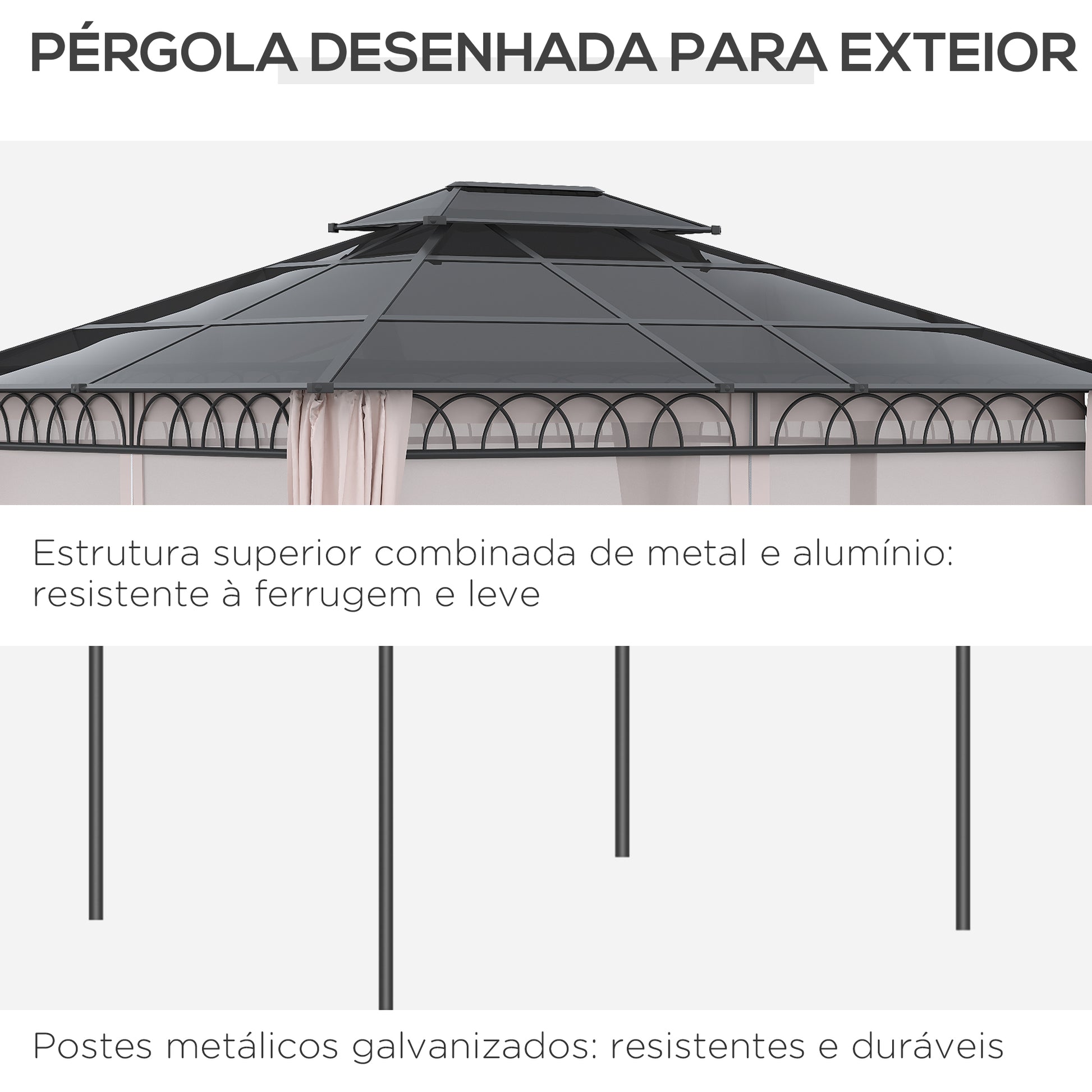 Pérgola de Jardim com Teto Duplo de Policarbonato 360x300x278 cm - Preto Cinza e Cáqui