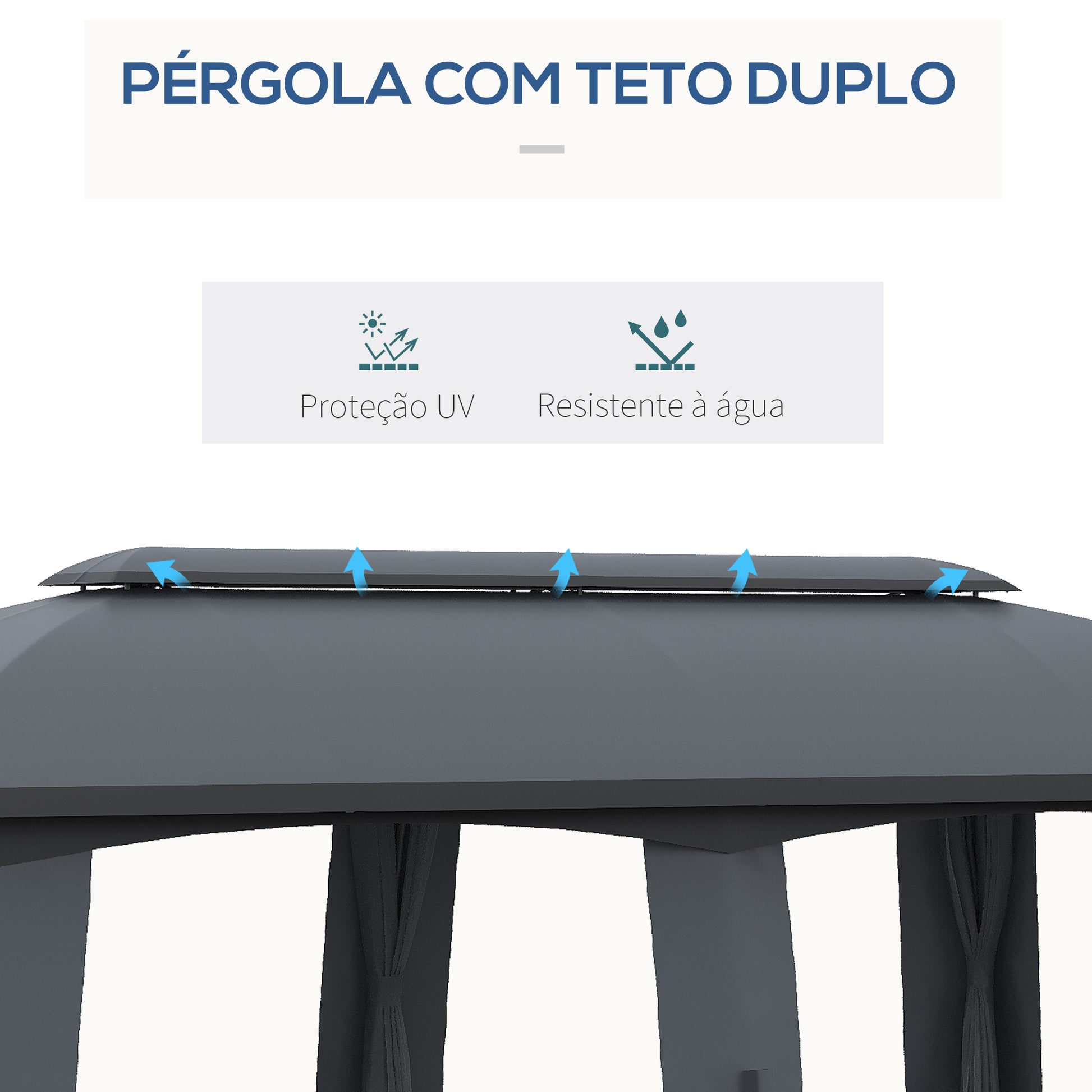 Pérgola de Jardim – 300x600x278 cm – Cinza Escuro – Metal galvanizado, poliéster e nylon