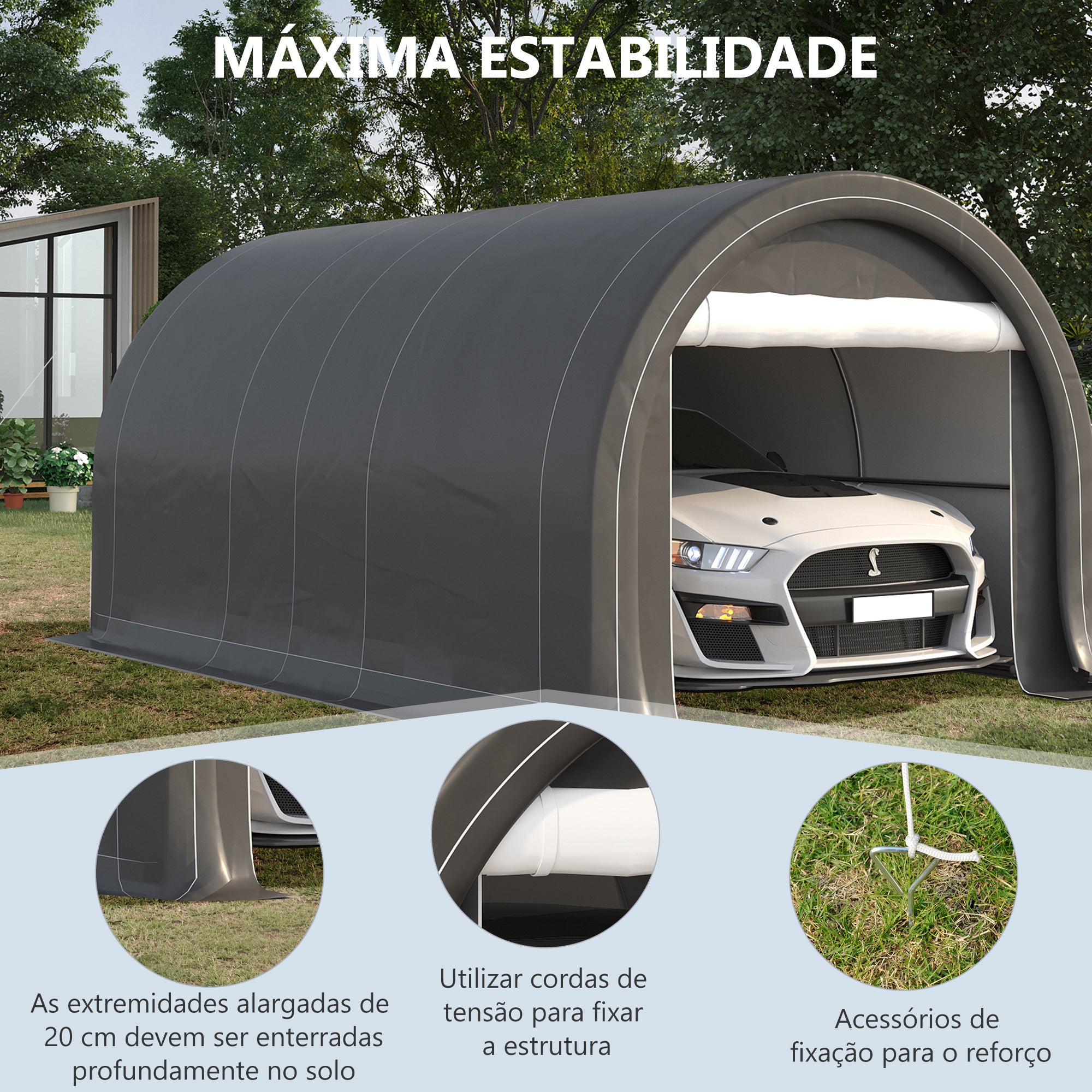 Proteja o seu veículo de forma eficaz com esta tenda garagem cinzenta de 500x300x240 cm. Feita com materiais de qualidade, esta tenda oferece máxima proteção contra poeira, chuva leve e raios UV.
