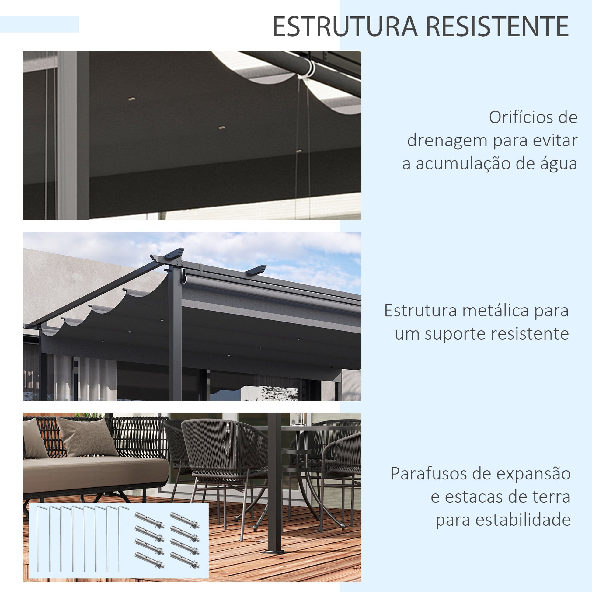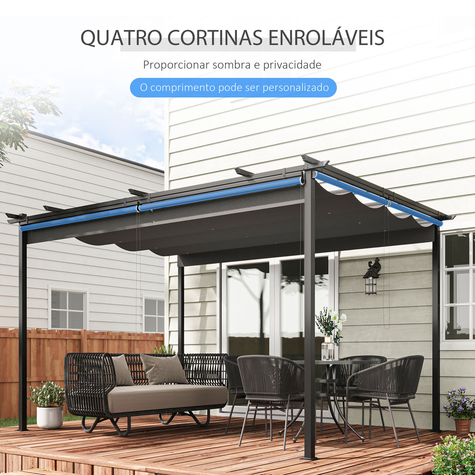 Pérgola de Jardim 3,95x2,95 cm Cinza Escuro Teto Retrátil 4 Cortinas