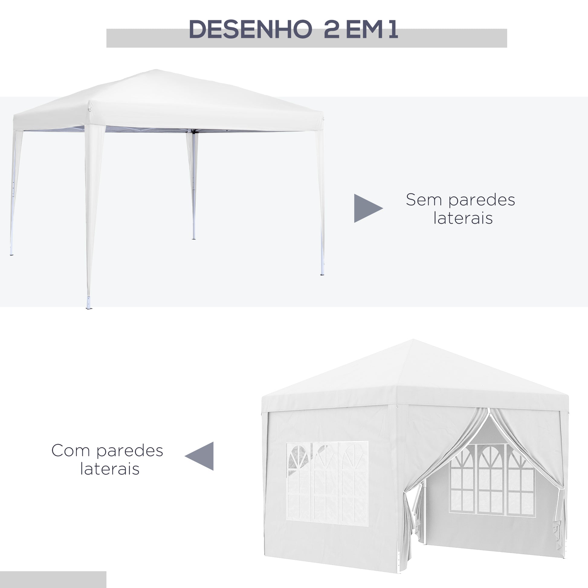Esta tenda elegante é perfeita para festas familiares, casamentos, piqueniques, eventos desportivos e muito mais. Com paredes laterais amovíveis, janelas e porta com zíper, oferece versatilidade e conforto.