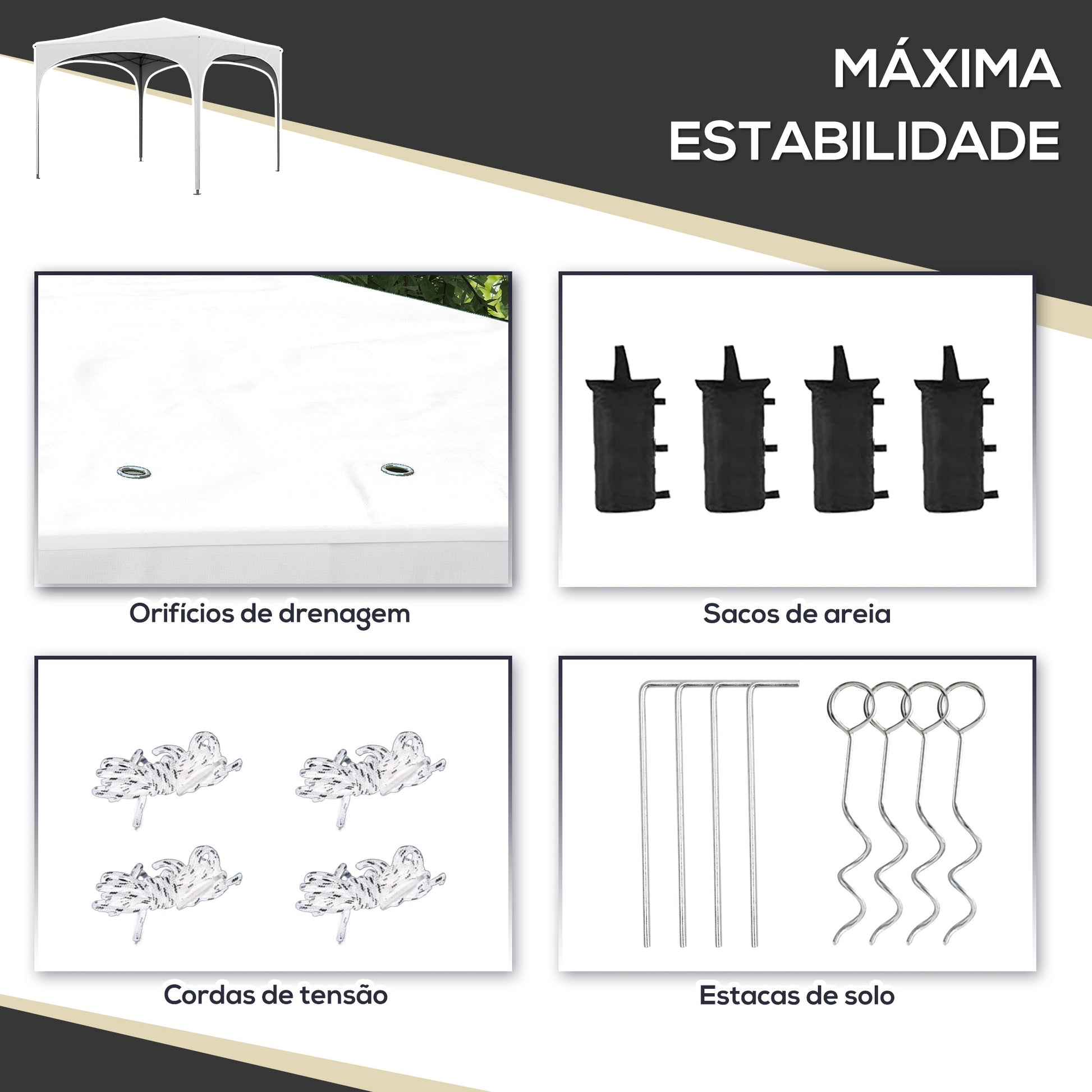 Tenda de Jardim Dobrável – 295x295x255 cm – Branco – Tecido Oxford e aço