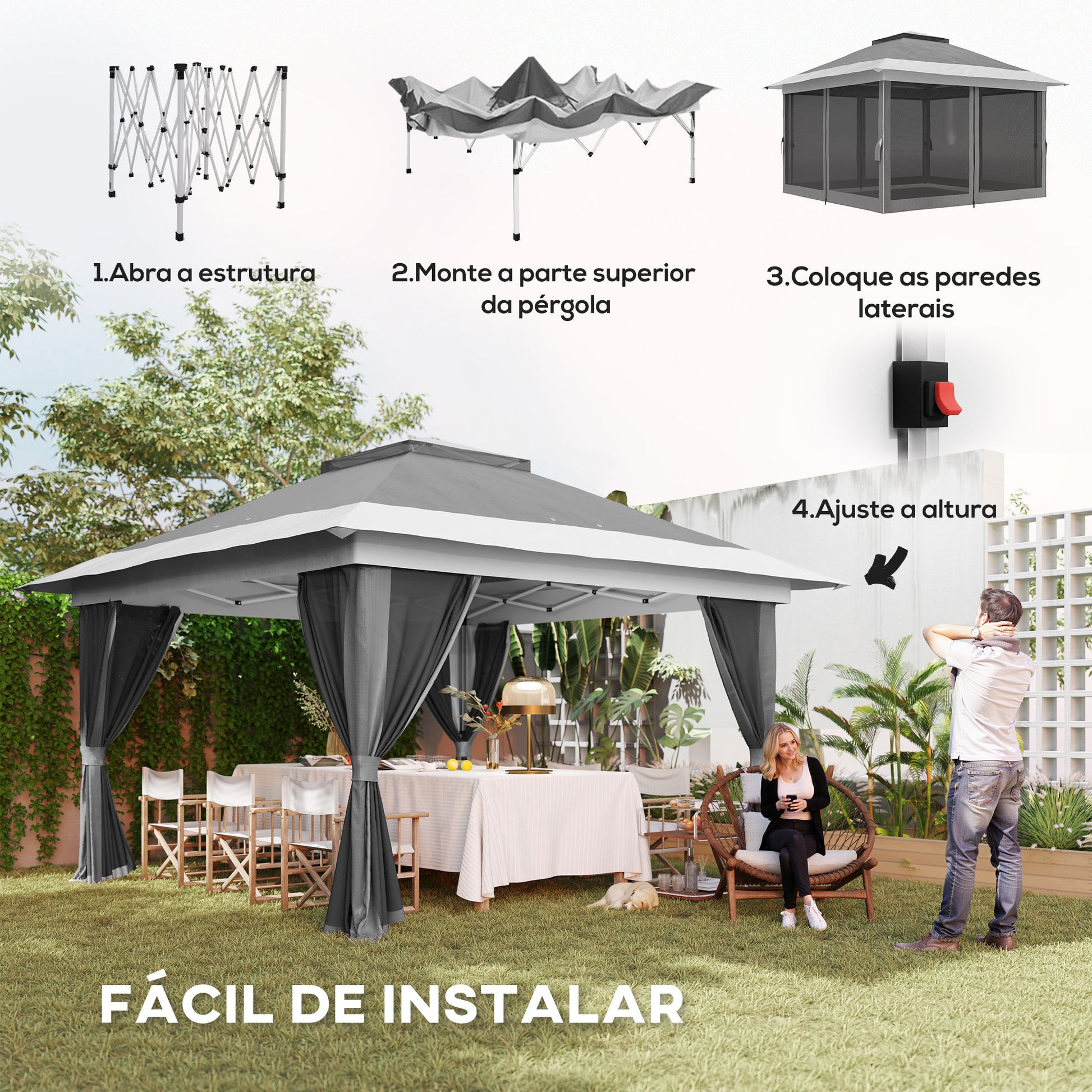 Desfrute do conforto de reunir-se ao ar livre com a pérgola pop-up cinzenta. Com medidas de 356x356x280 cm, esta pérgola é fácil de montar e desmontar, sendo ideal para eventos ao ar livre ou para qualquer espaço no jardim.