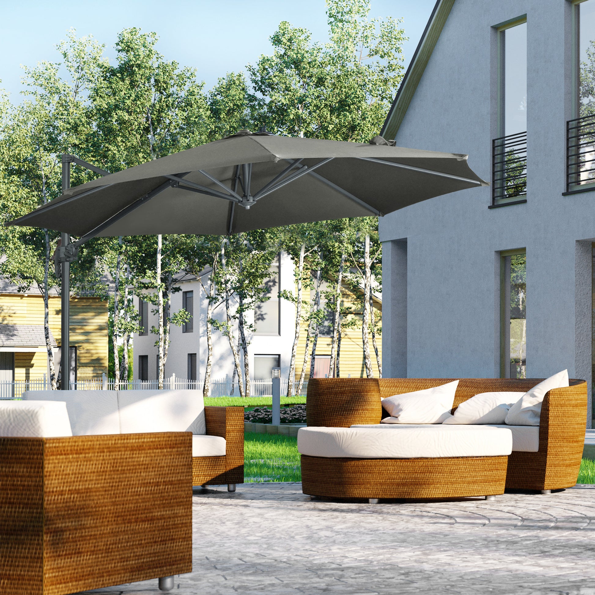 Chapéu de Sol de Jardim – Ø293x248 cm – Cinza Escuro – Alumínio, Metal, Poliéster e PC
