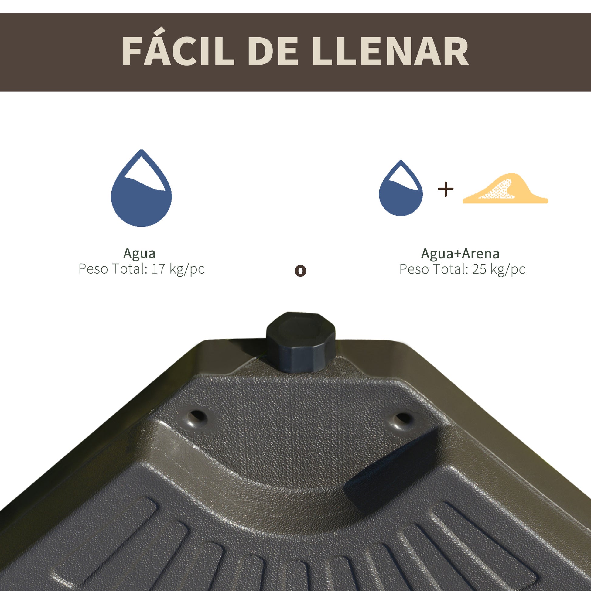 Obtenha estabilidade extra para o seu guarda-sol com esta base recarregável em 4 partes, em cor marrom e medidas 100x100x10,5cm. Ideal para uso em jardins, pátios e áreas ao ar livre.