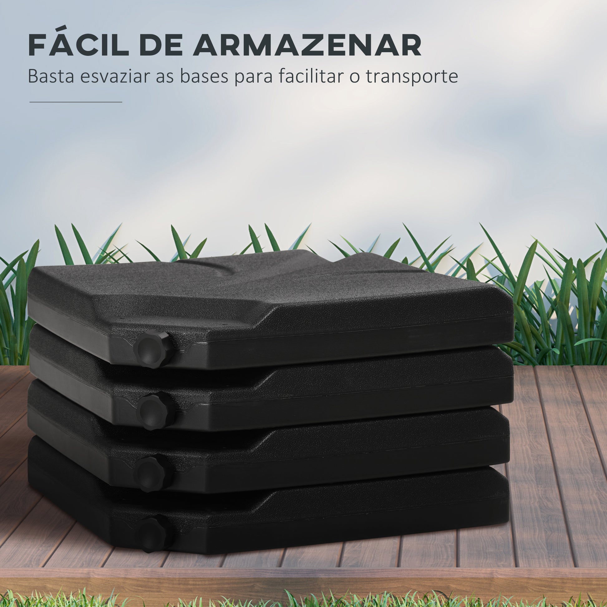 Procura uma base resistente e estável para o seu chapéu de sol? Apresentamos a base para chapéu de sol em preto, com medidas de 103x103x8,3 cm, ideal para jardim, pátio ou terraço.