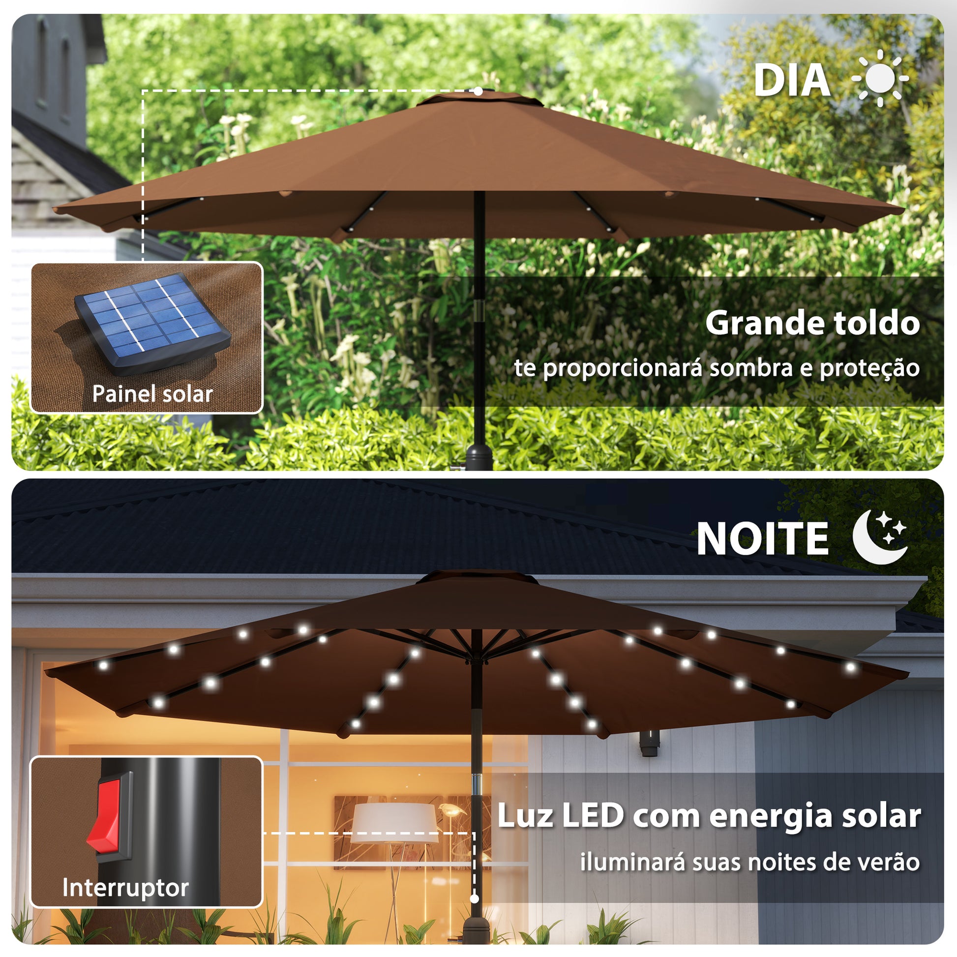 Chapéu de Sol Marrom Ø265x233cm com 32 Luzes LED Solares