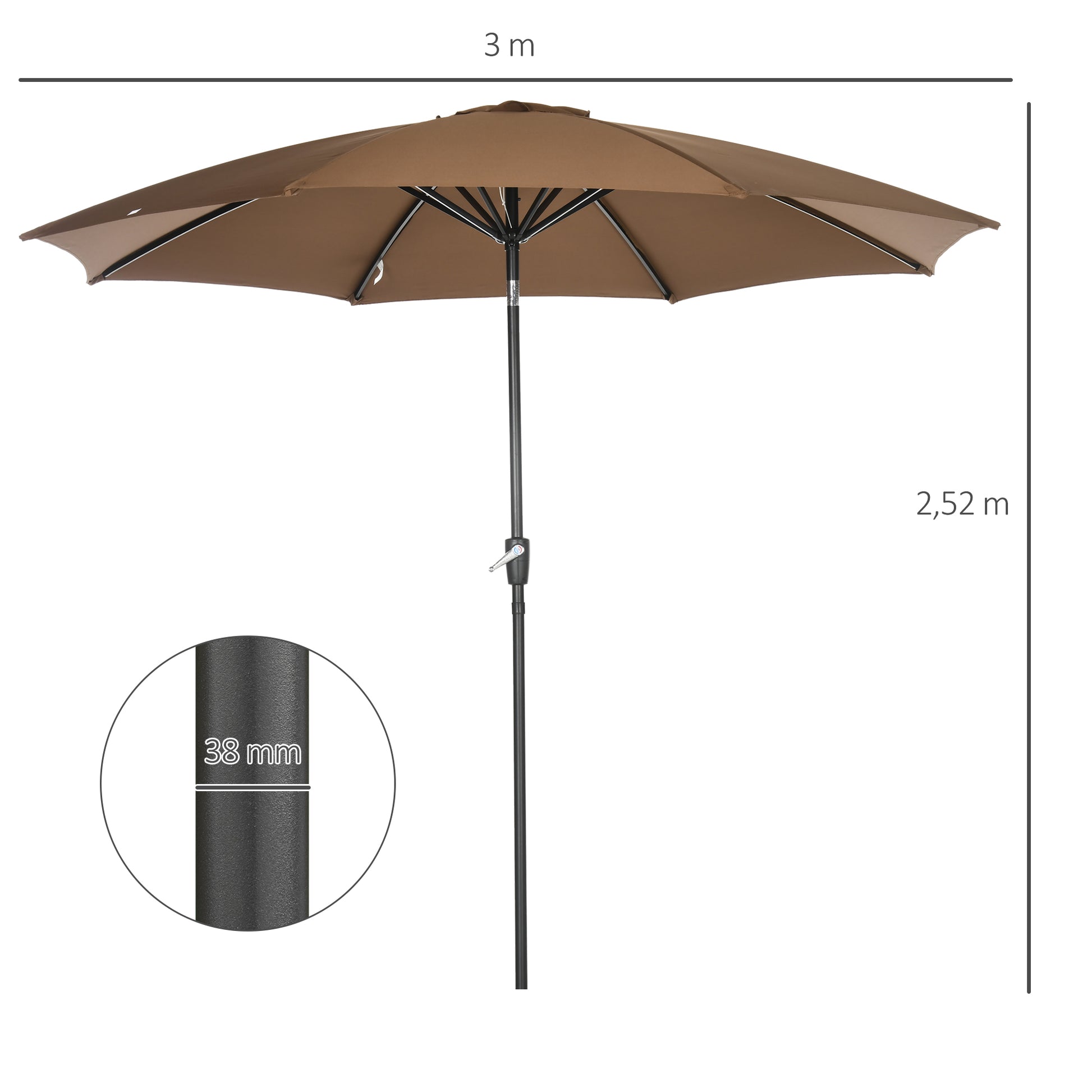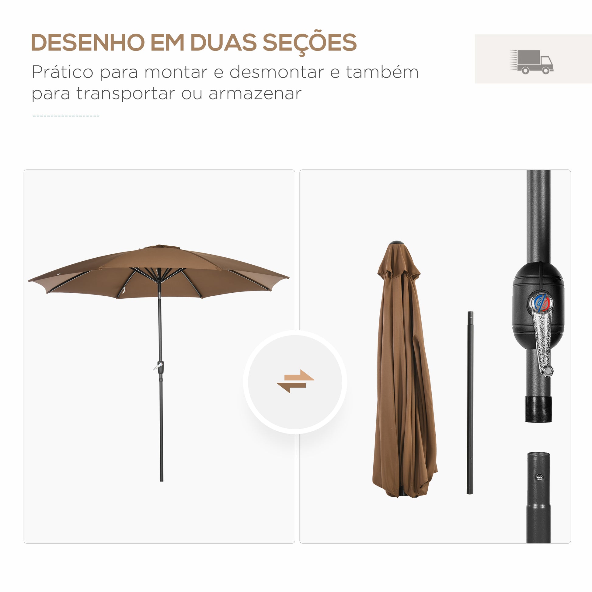Chapéu de Sol Ø300x240 cm Marrom - Manivela, Ângulo Ajustável e Estrutura Resistente