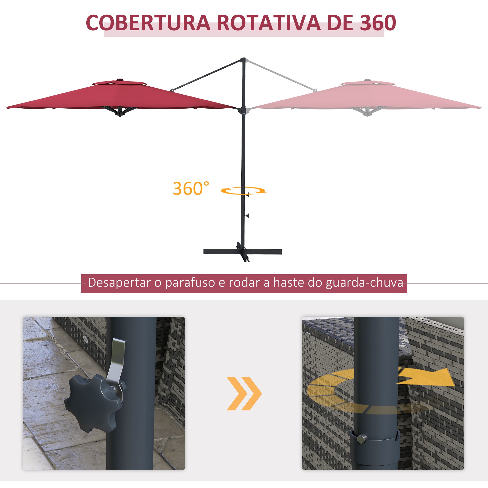 Guarda-Sol Excêntrico Vermelho de Vinho Ø294x242 cm com Altura Ajustável