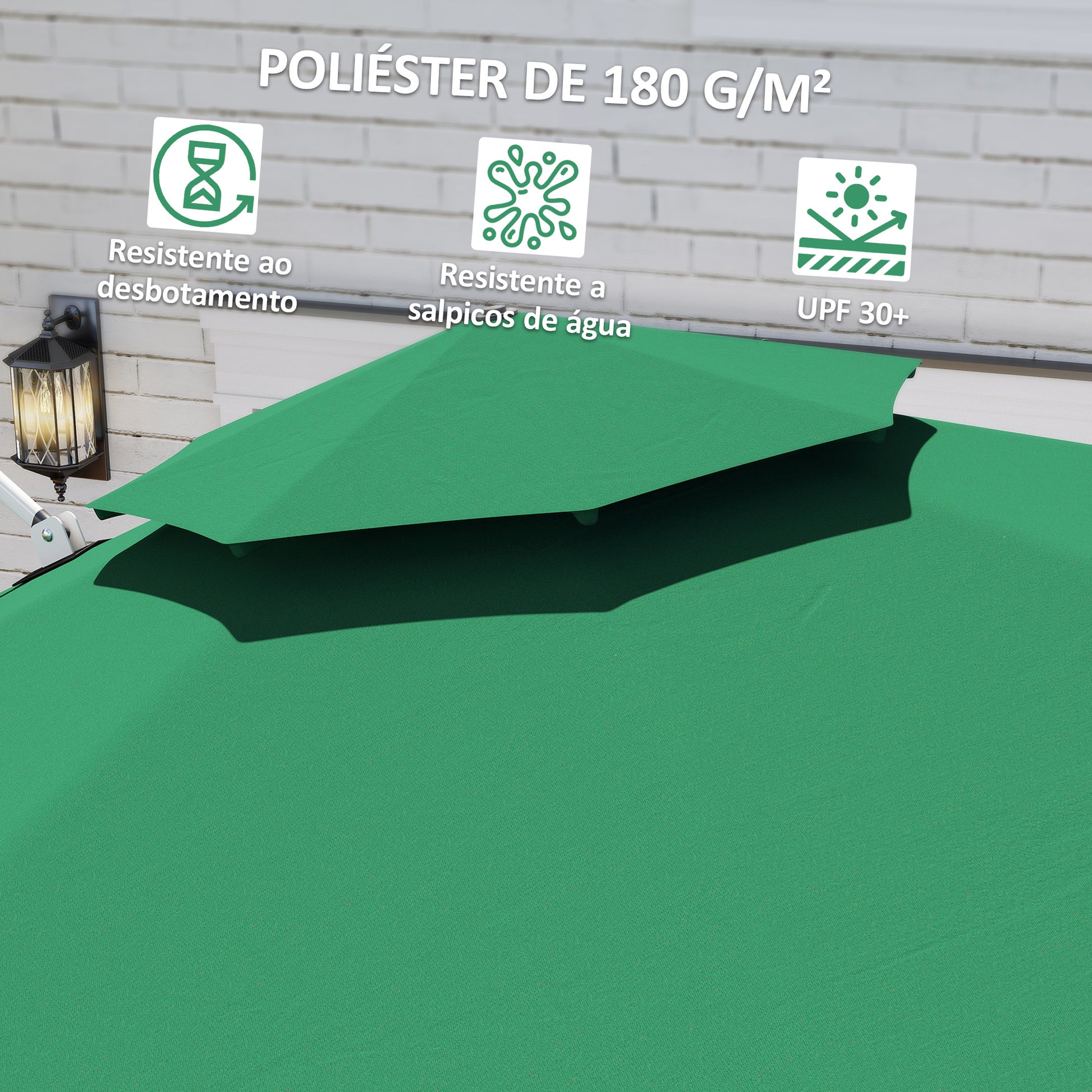 Chapéu de Sol Verde Escuro Ø292x247 cm com Manivela Rotativa 360°