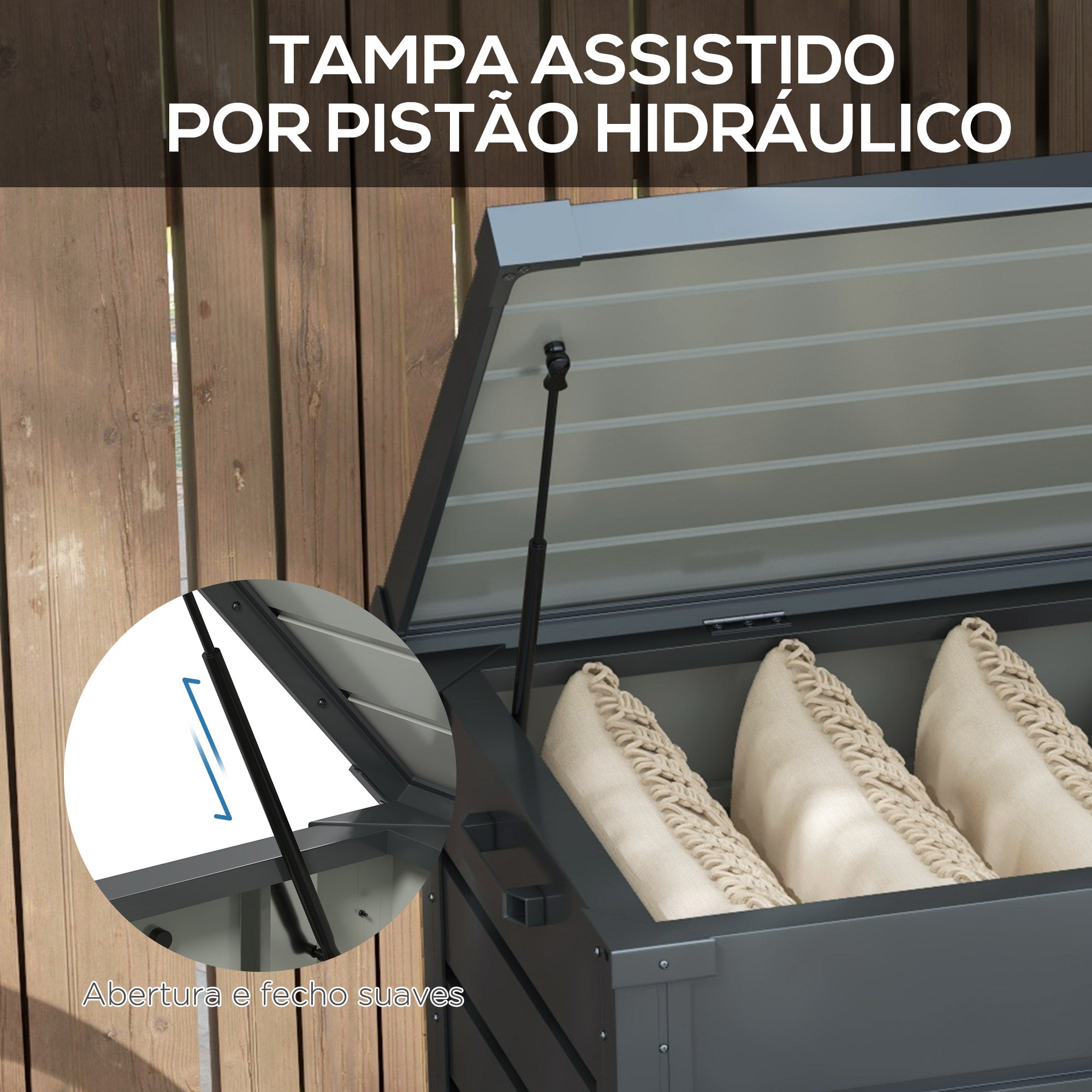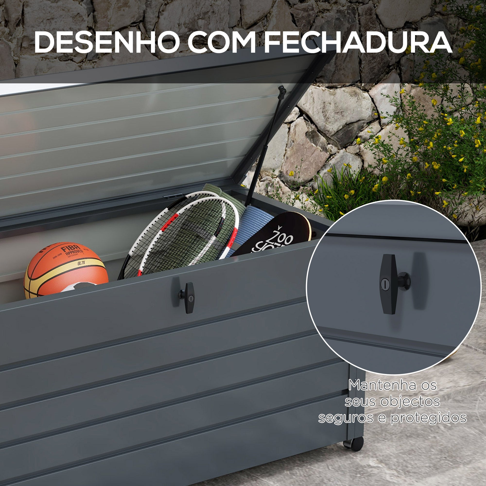 Este baú de armazenamento para exterior em aço galvanizado é a solução perfeita para manter o seu jardim organizado e os seus pertences protegidos. Com medidas de 120x62x66 cm, oferece um amplo espaço de 311 litros para guardar ferramentas, almofadas e acessórios de jardim.