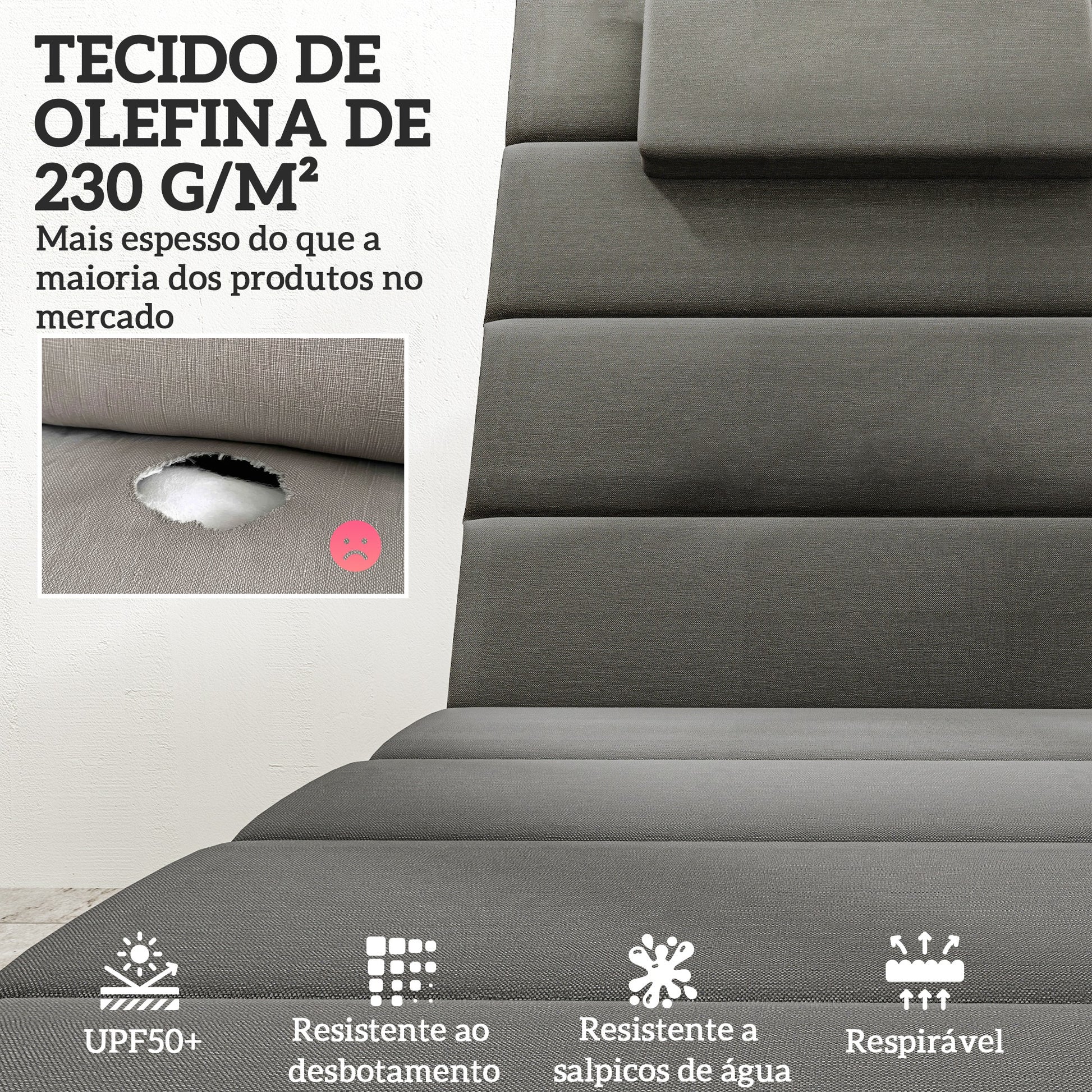 Almofadas para Espreguiçadeira – 203x66x3 cm – Cinzento – Olefin