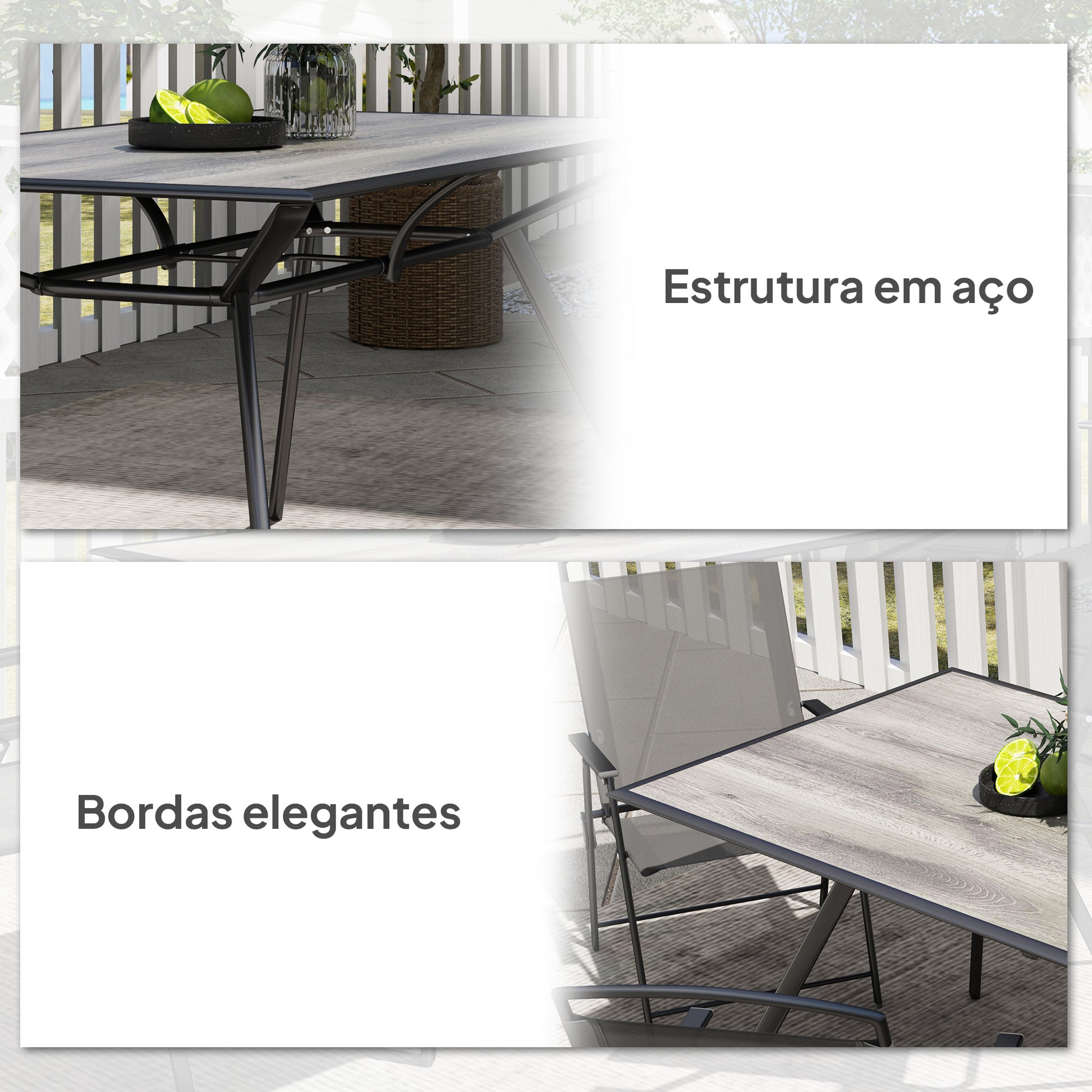 A mesa de refeição de exterior da Outsunny é uma combinação perfeita de funcionalidade e elegância, trazendo um toque moderno ao seu espaço ao ar livre. Requer montagem e suporta até 70 kg de peso.