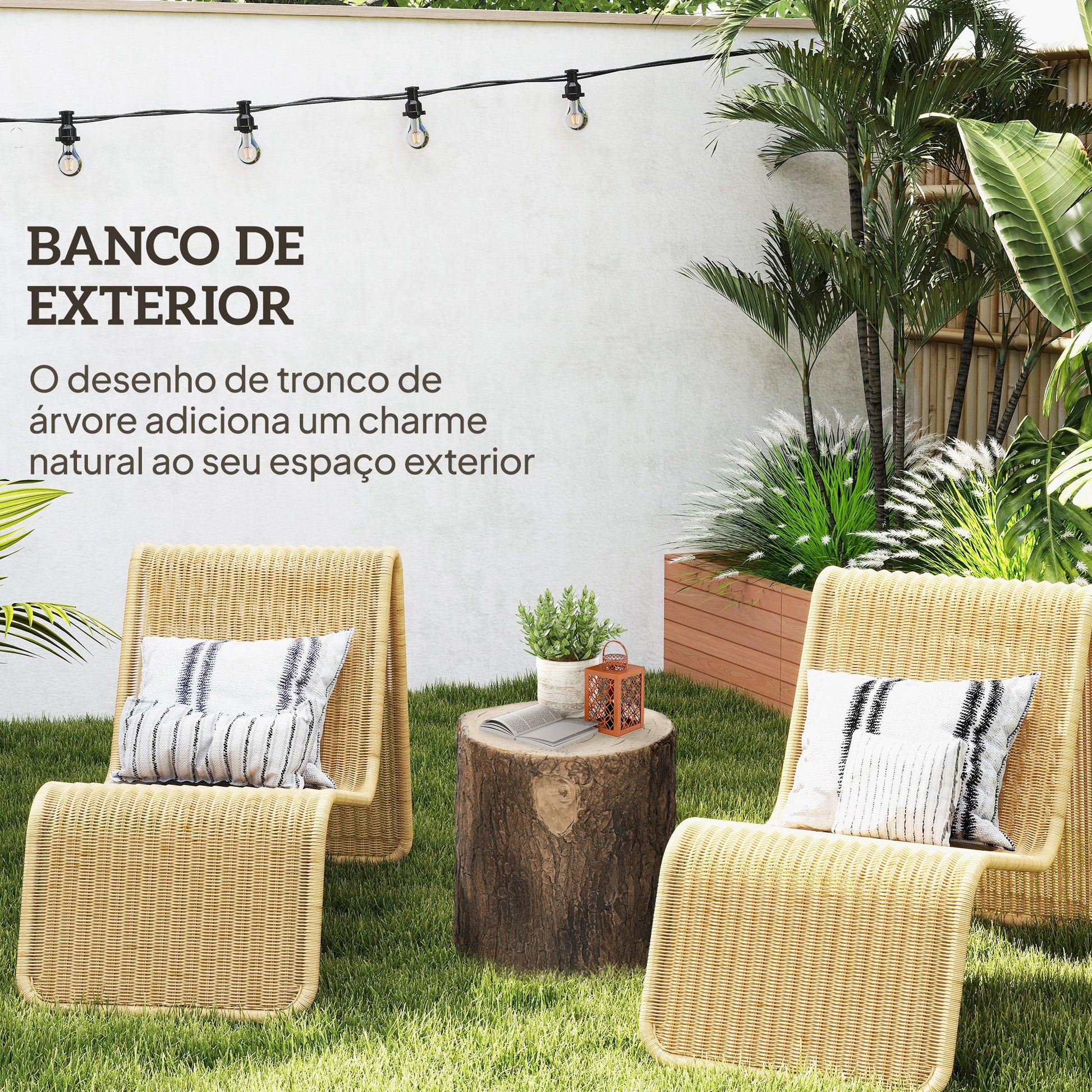 - Benefícios: Design realista de tronco de árvore para um toque natural, base resistente com capacidade para até 110 kg, fácil manutenção para mais tempo de relaxamento.