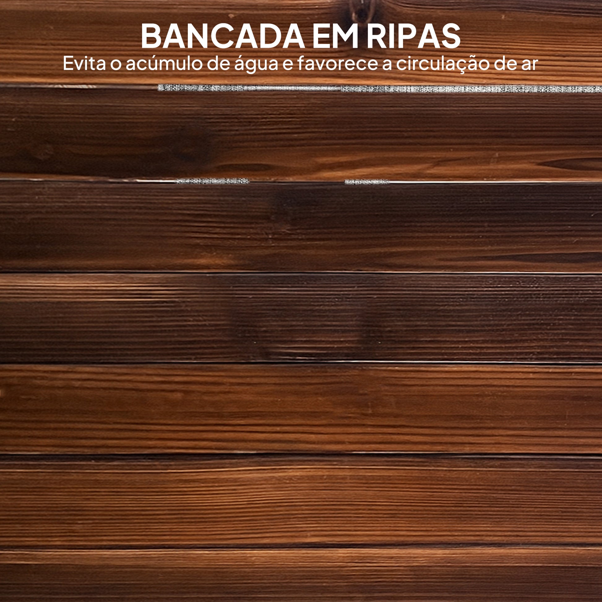 - Benefícios: Suporta até 50 kg, possui orifício para chapéu de sol integrado e bancada em ripas para facilitar a drenagem.