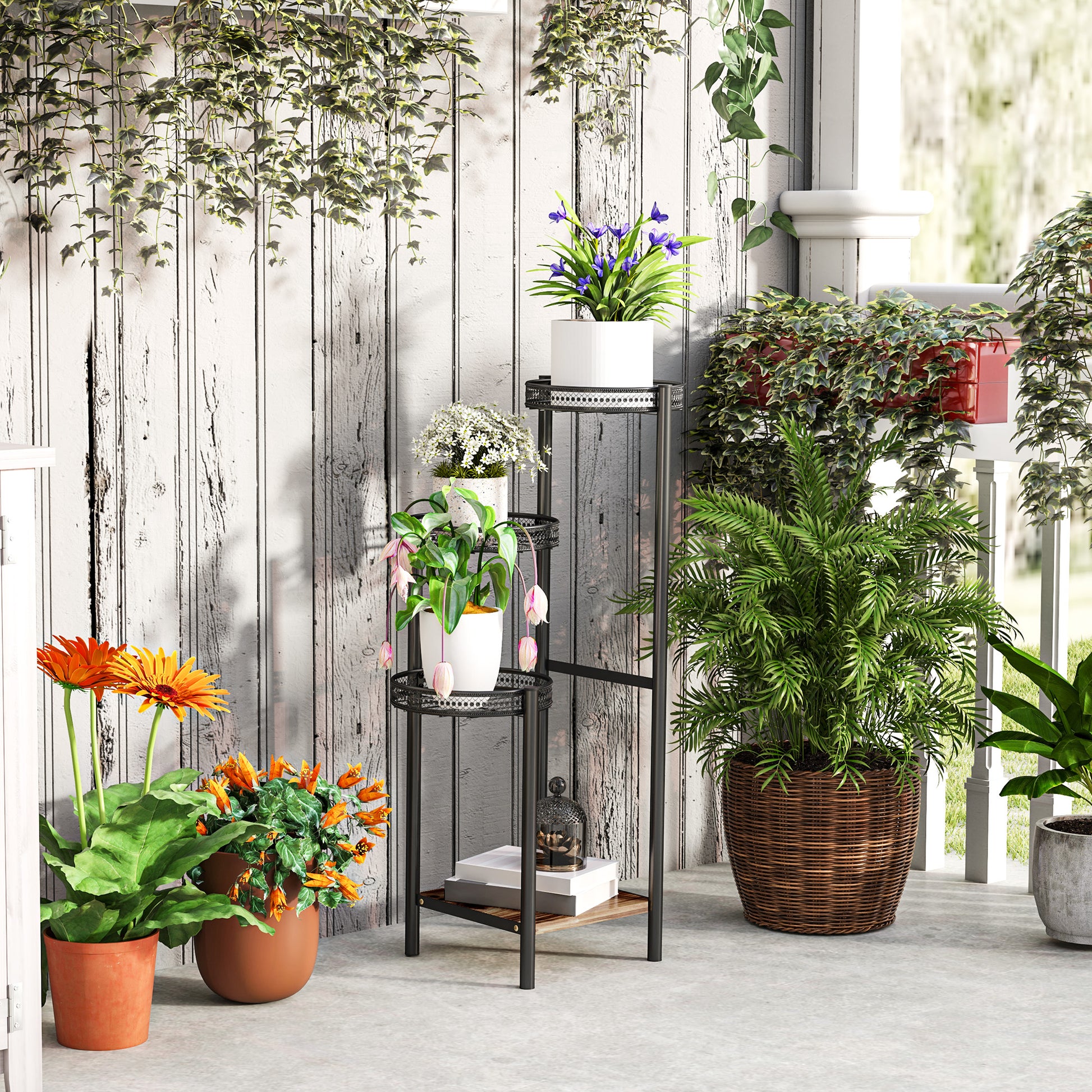 Aproveite ao máximo o espaço vertical com este suporte compacto e elegante, mantendo suas plantas sempre seguras e organizadas.